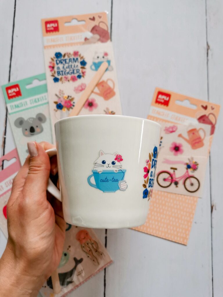 U nas w tym roku przygotujemy również własnoręcznie ozdobione kubki. Do ich wykonania wystarczy jednokolorowy kubek (najlepiej biały) oraz kilka zestawów od Apli Kids:
