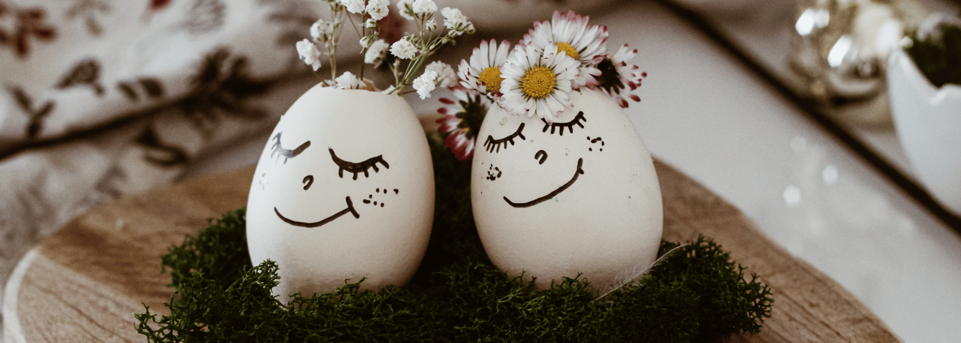 Naszym drugim pomysłem jest tatuowanie jajek. Wystarczą tymczasowe tatuaże, które za kilka złotych znajdziecie u nas w Tublu. Możecie wybrać te z kwiatowymi, wiosennymi akcentami, albo zaszaleć z jednorożcami, dinozaurami, czy kosmosem 🙂