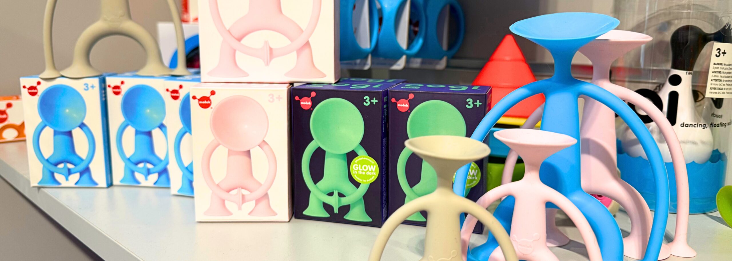 Oogi to niepozorne silikonowe stworki z przyssawkami, które potrafią zająć dziecko na zaskakująco długo. Można je łączyć ze sobą, przyczepiać do szyby, stolika czy fotelika i wymyślać przeróżne historie. Rozwijają wyobraźnię, małą motorykę i są po prostu… hipnotyzująco wciągające. Do tego są miękkie, niewielkie i idealne do podręcznej torby.