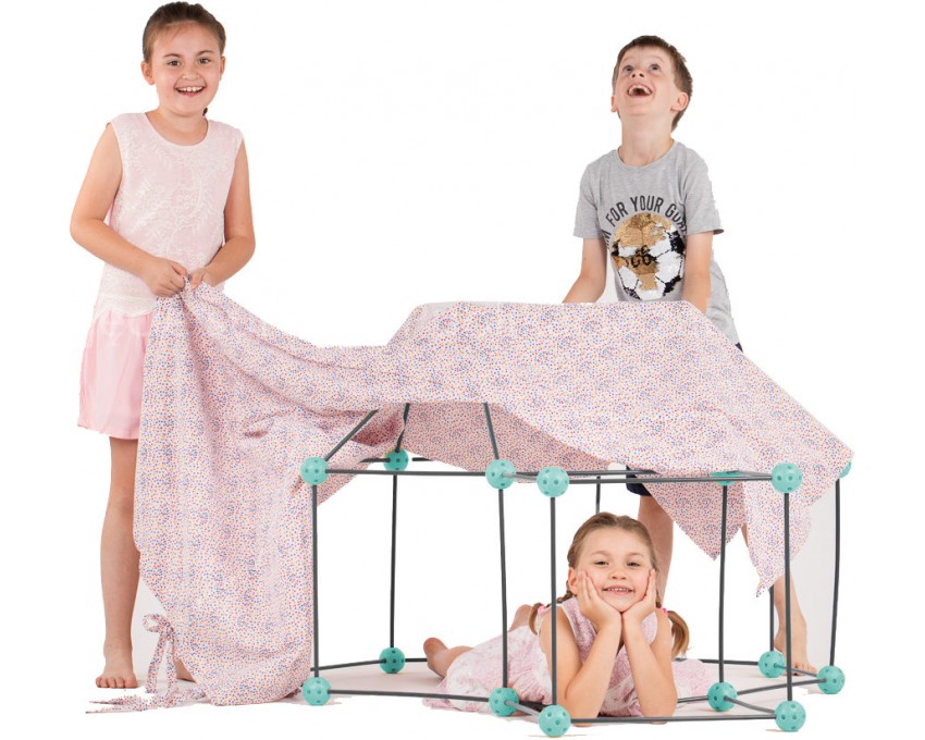3. Budowanie bazy, w której można schować się przed całym światem (i rodzicami). Świetnie do tego sprawdzą się krzesła i narzucony na nie koc, gotowe namioty lub Zwariowany namiot – czyli zestaw patyczków i łączników-kul, z których można zbudować bazę, igloo, tunel, domek.