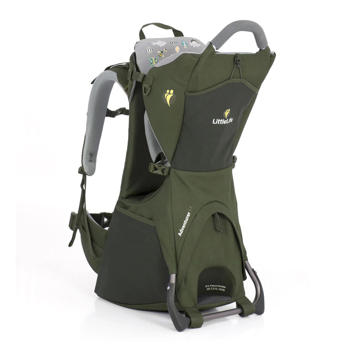 Dodatkowe funkcjonalne detale nosidła Adventurer S3 to m.in. uchwyty na górze – główny (wyściełany miękką gąbką) oraz pomocniczy, które ułatwiają ręczne przenoszenie. Wnęka na stopę na spodzie nosidła wspomaga stabilizację, a dodatkowy plastikowy element na dole konstrukcji pozwala na bezpieczne postawienie nosidła na ziemi.