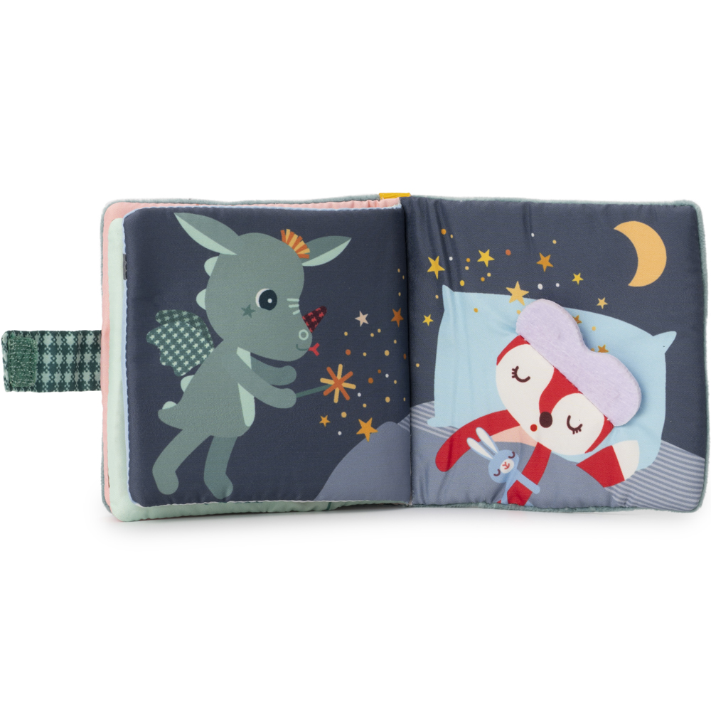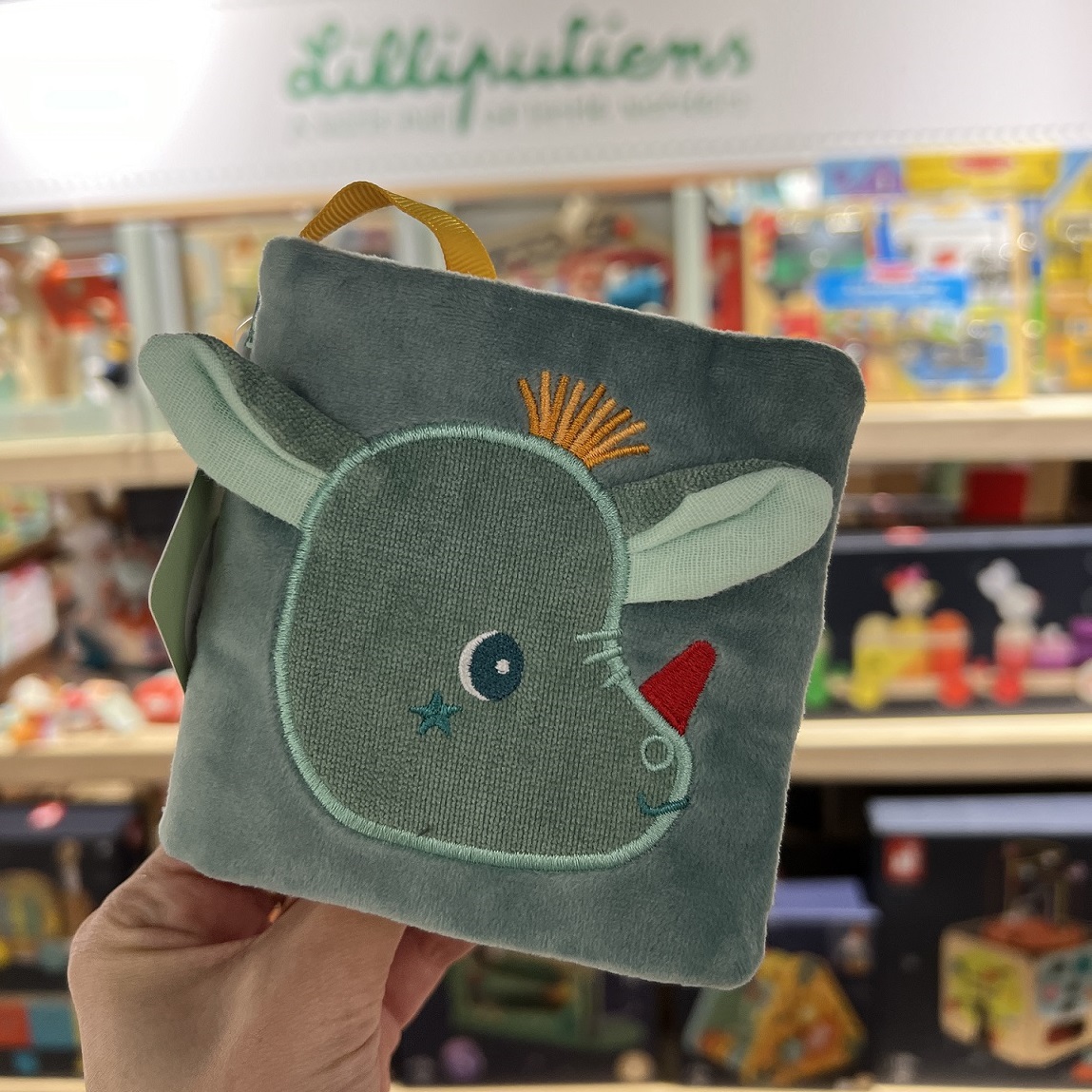 Miękka mini-książeczka wielofunkcyjna z silikonowym gryzakiem Lilliputiens w wersji: Smok Joe
