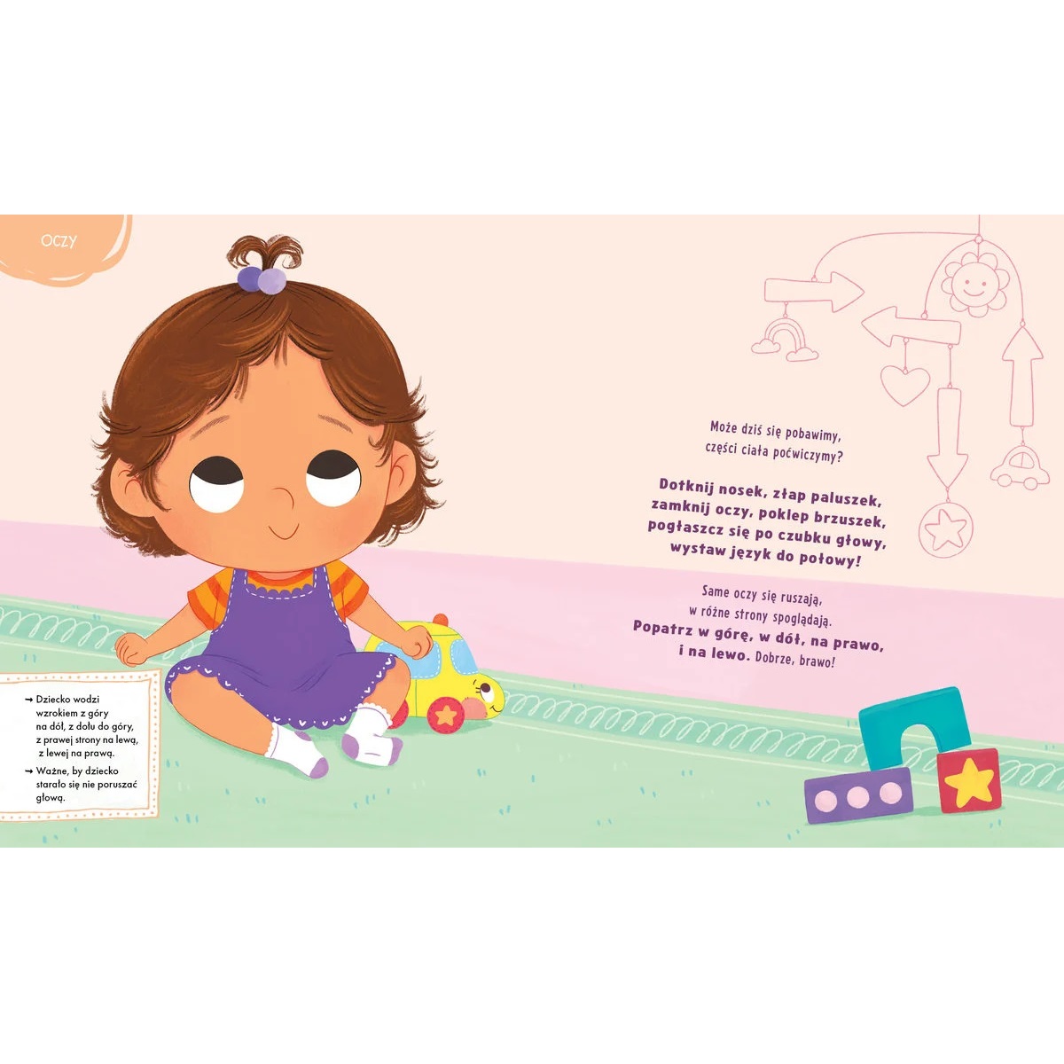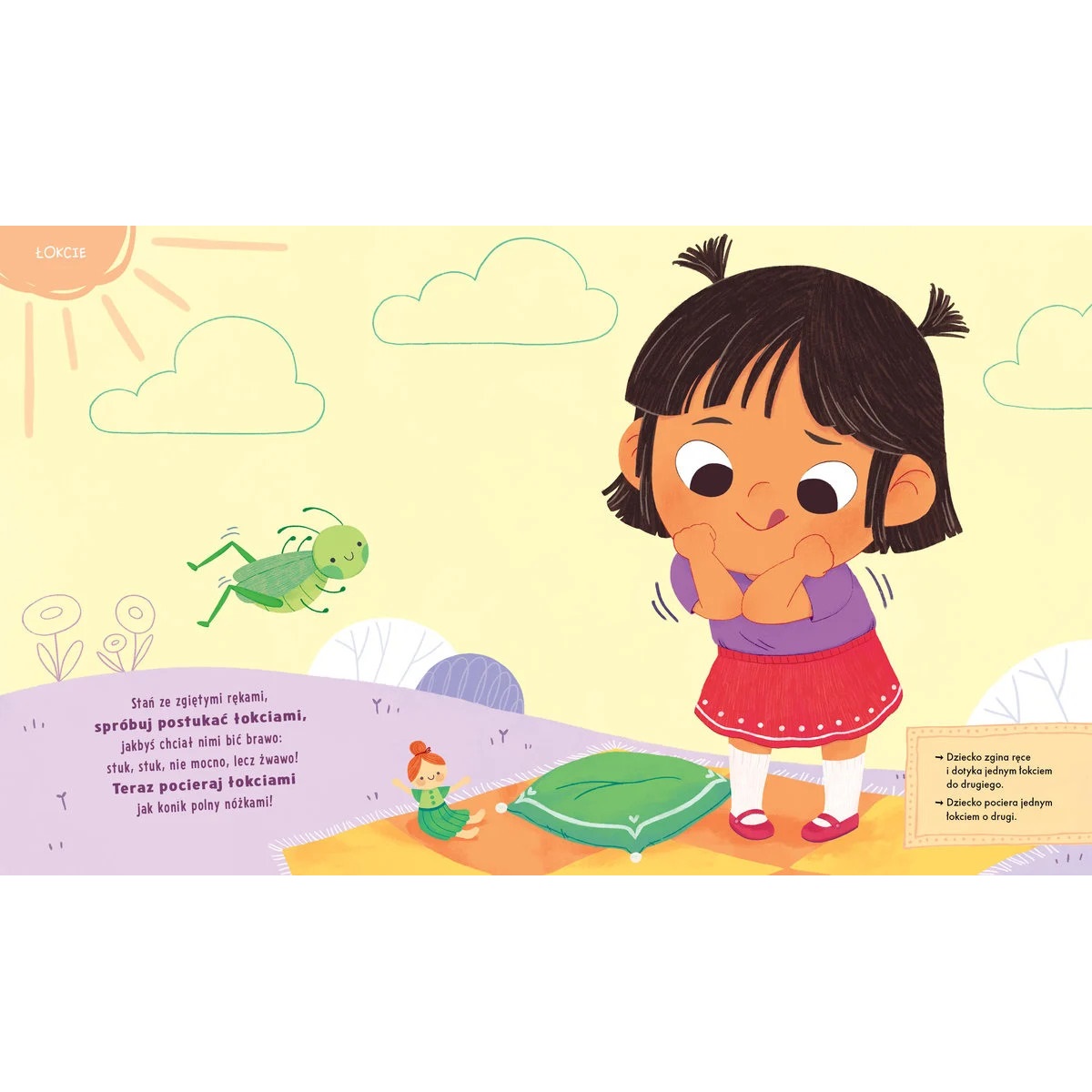 Wspaniała rymowanka połączona z ćwiczeniami sensorycznymi, dzięki którym maluch oswoi własne ciało. Podczas zabawy z wierszykami dziecko dodatkowo rozwinie słownictwo, pamięć słuchową, koordynację ruchową, sprawność palców, poprawi koncentrację. Propozycje zabaw, mających za zadanie stymulować rozwój sensoryczny, będą dodatkowym wsparciem dla rodzica w pracy z dzieckiem.