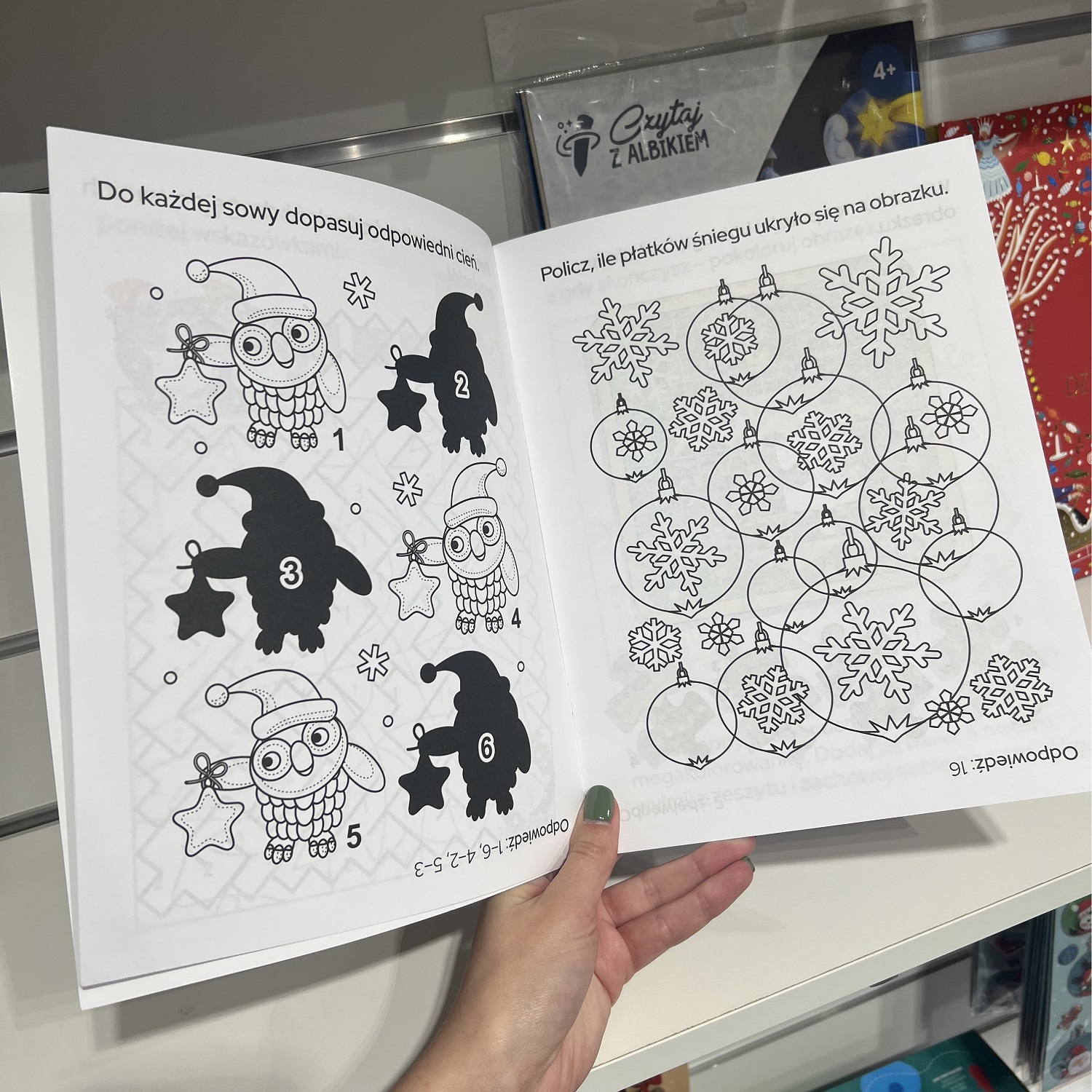 "Zimowe gry i zabawy" to świetna rozrywka dla twojego dziecka! Znajdziesz w nich gry planszowe, labirynty, kolorowanki, zagadki, zadania, wycinanki, papiery świąteczne itp. Doskonała rozwijająca zabawa dla dzieci w wieku 3-5 lat, która umili czas oczekiwa. "Zimowe gry i zabawy" to świetna rozrywka dla twojego dziecka! Znajdziesz w nich gry planszowe, labirynty, kolorowanki, zagadki, zadania, wycinanki, papiery świąteczne itp. Doskonała rozwijająca zabawa dla dzieci w wieku 3-5 lat, która umili czas oczekiwania na Święta.