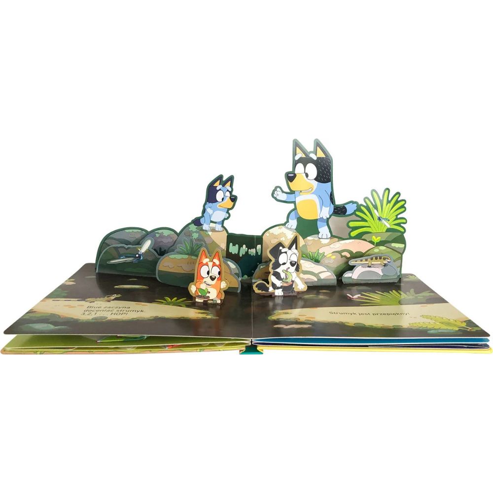 Znalazły się tu miejsca znane z najlepszych odcinków Bluey: ogród rodziny Łączków, front ich pięknego domu, strumyk czy basen. Dzięki temu młody czytelnik może poczuć się jak w trójwymiarowej wersji ulubionej kreskówki!
