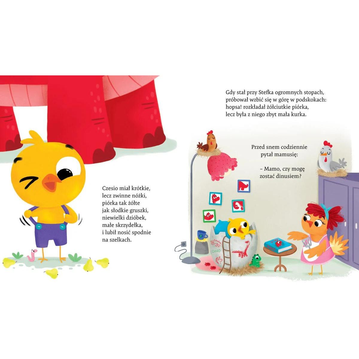 Kurczak Czesiek bardzo podziwia dinozaura Stefana - naśladuje go we wszystkim i marzy, by być taki jak on. Tymczasem okazuje się, że dinuś niczego tak nie pragnie, jak być podobnym do swego przyjaciela kurczaka!
