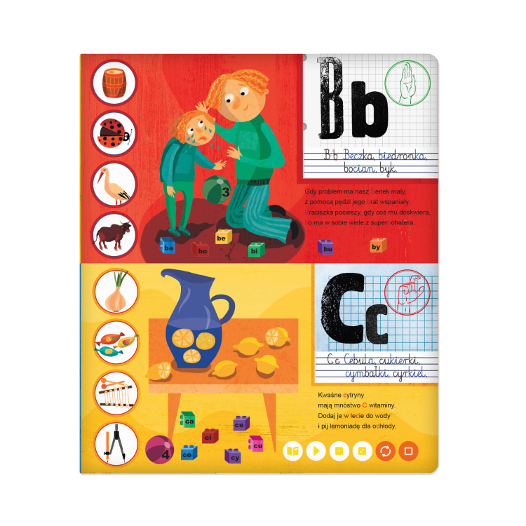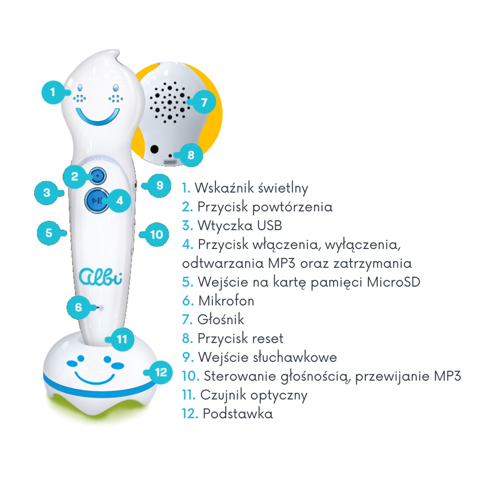Książka pozwala odkryć adeptom nauki czytania, że są takie wyrazy, które słyszymy inaczej niż są zapisane - czasami na przykład mamy w wyrazie literę„w”, ale mówiąc go, słyszymy bezdźwięczne „f”. Ta świadomość pozwoli dzieciom w przyszłości szybciej opanować trudniejszą umiejętność niż czytanie - sztukę poprawnego pisania. Czytaj z Albikiem to wyjątkowa zabawka edukacyjna, bo pozwala dzieciom dostrzec różnice w zapisie i wymowie. Najmłodsi mogą zobaczyć w warstwie ilustracyjnej poprawny zapis wyrazu, a dzięki mówiącemu pióru usłyszeć jego prawidłowy podział na głoski (które nie są równoznaczne z literami) i sylaby.