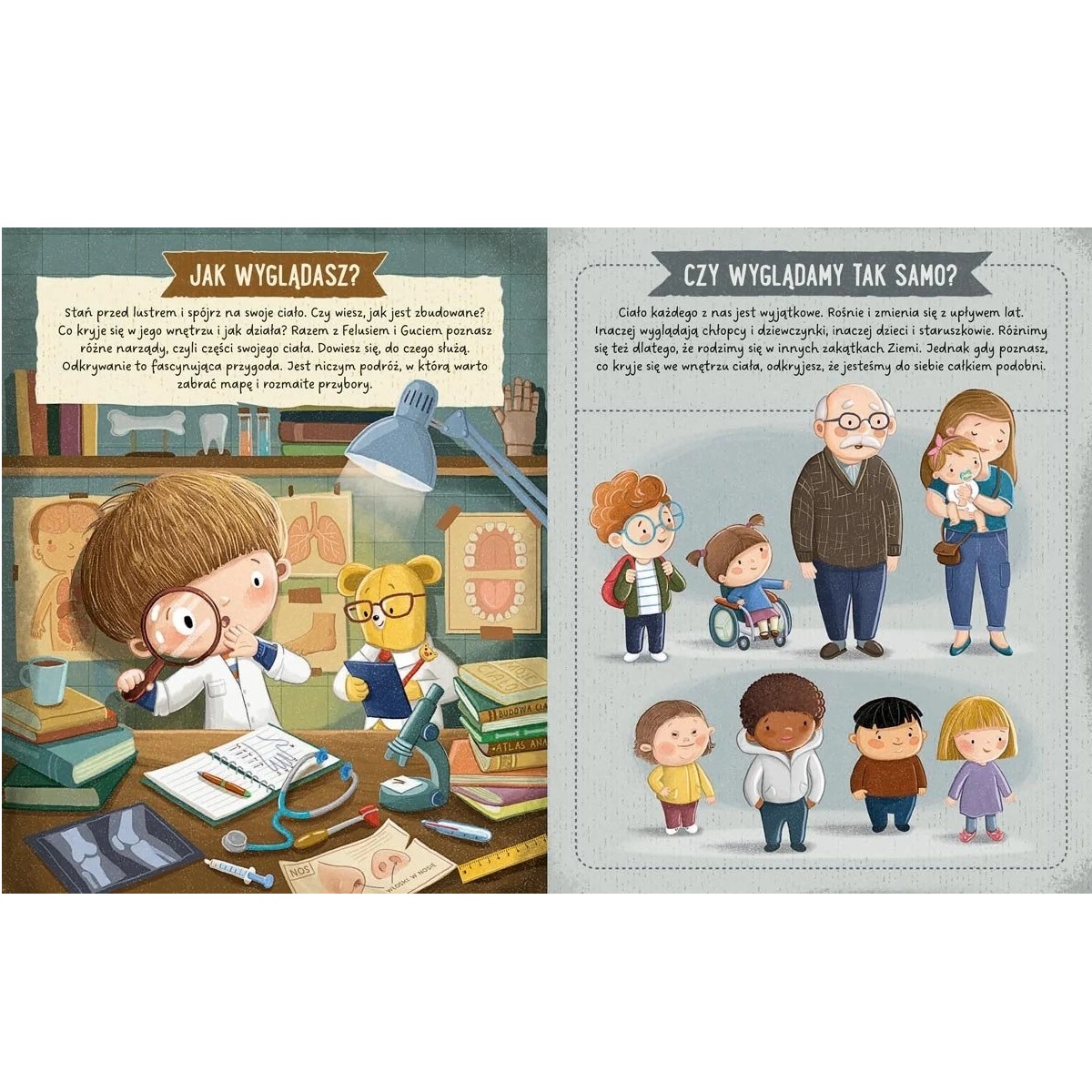 Feluś jak każdy maluch jest ciekawy świata. Tym razem chłopiec i jego miś Gucio przekonają się, że ciało człowieka jest fascynujące. Wspólnie sprawdzą, jak działa i co się kryje w jego wnętrzu, a także nauczą się dbać o zdrowie i dobre samopoczucie od czubka głowy aż po pięty.
