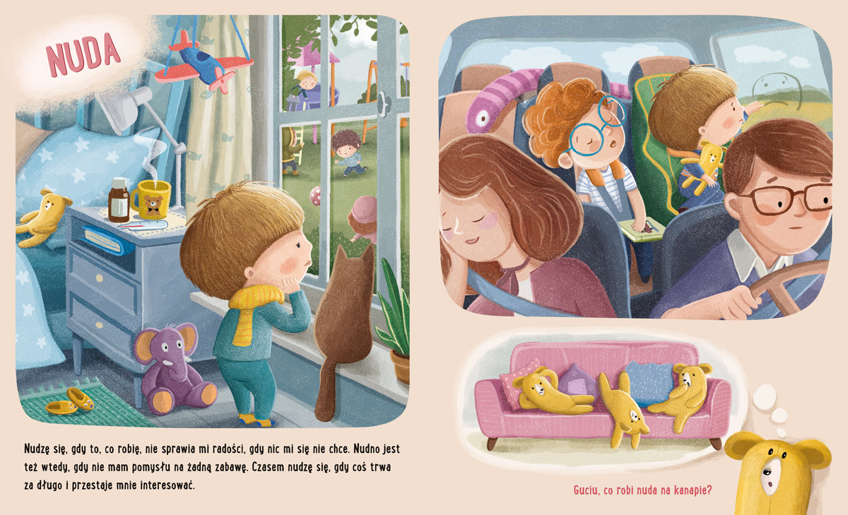 Podczas lektury książki mały czytelnik znajdzie się w wielu dobrze znanych sobie sytuacjach. Razem z Felusiem i Guciem nauczy się rozpoznawać, nazywać i akceptować swoje emocje. Będzie też wiedział, skąd się biorą, w jaki sposób można je wyrażać i jak sobie z nimi radzić.