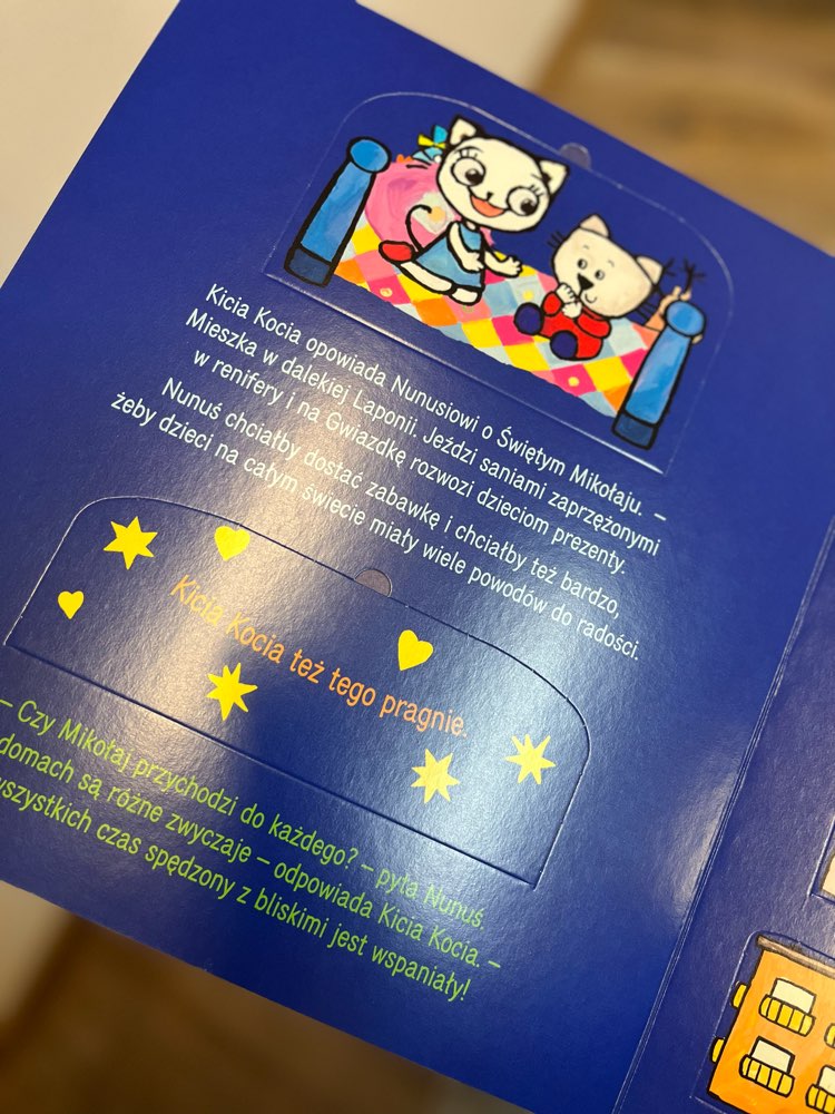 Kicia Kocia i Nunuś. Idą święta to kolejna książka w serii o Kici Koci autorstwa Anity Głowińskiej. W środku mały czytelnik znajdzie aż 45 otwieranych okienek, które kryją w sobie niejedną (świąteczną!) tajemnicę. To idealna okazja, żeby zapoznać dzieci z bożonarodzeniowymi tradycjami.