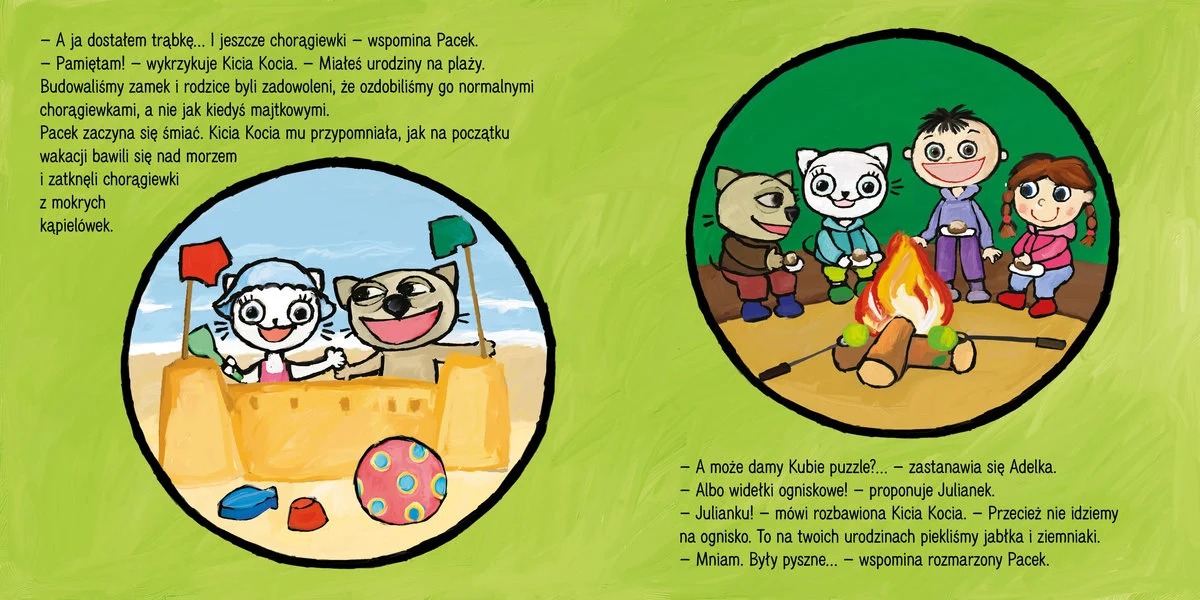 „Kicia Kocia idzie na urodziny” jest kolejną pozycją, dzięki której mali czytelnicy mogą odkrywać przygody Kici Koci oraz jej małego braciszka. Dzieci uwielbiają te książeczki za wyraziste ilustracje, ciekawe przygody i bohaterów, z którymi najmłodsi czytelnicy mogą się łatwo utożsamić. Jeżeli lubicie Kicię Kocię, koniecznie sięgnijcie po tę pozycję – w końcu z tą sympatyczną kotką nigdy nie jest nudno! Bez wątpienia pokochacie ją tak mocno, jak pozostałe książeczki z serii!