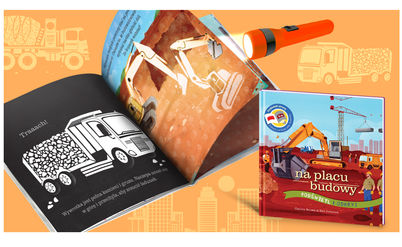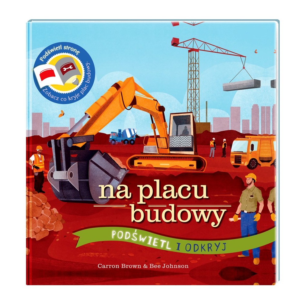 Od kierowcy dźwigu w kabinie i inżynierów, kopiących głęboko pod ziemią, po buldożery i wszelkiego rodzaju maszyny. Każda strona odkryje przed tobą sekrety ruchliwego placu budowy. Ta niezwykła książka to doskonała pozycja dla najmłodszych fanów maszyn! Dzięki zastosowaniu specjalnej powłoki UV, latarka w rękach dziecka działa niczym rentgen. Wystarczy poświecić nią od tyłu na ilustracje lub spojrzeć pod światło, a naszym oczom ukażą się kolejne, ukryte wcześniej sceny. Książki z serii Podświetl i
