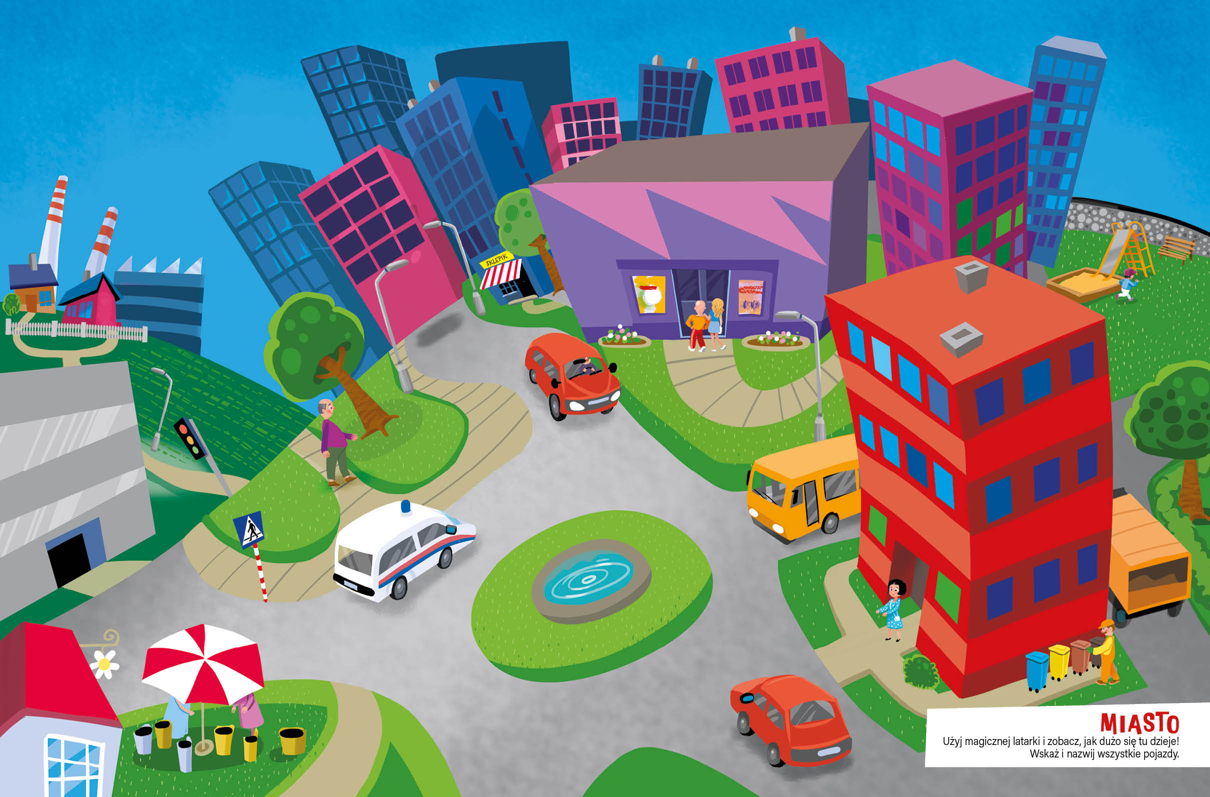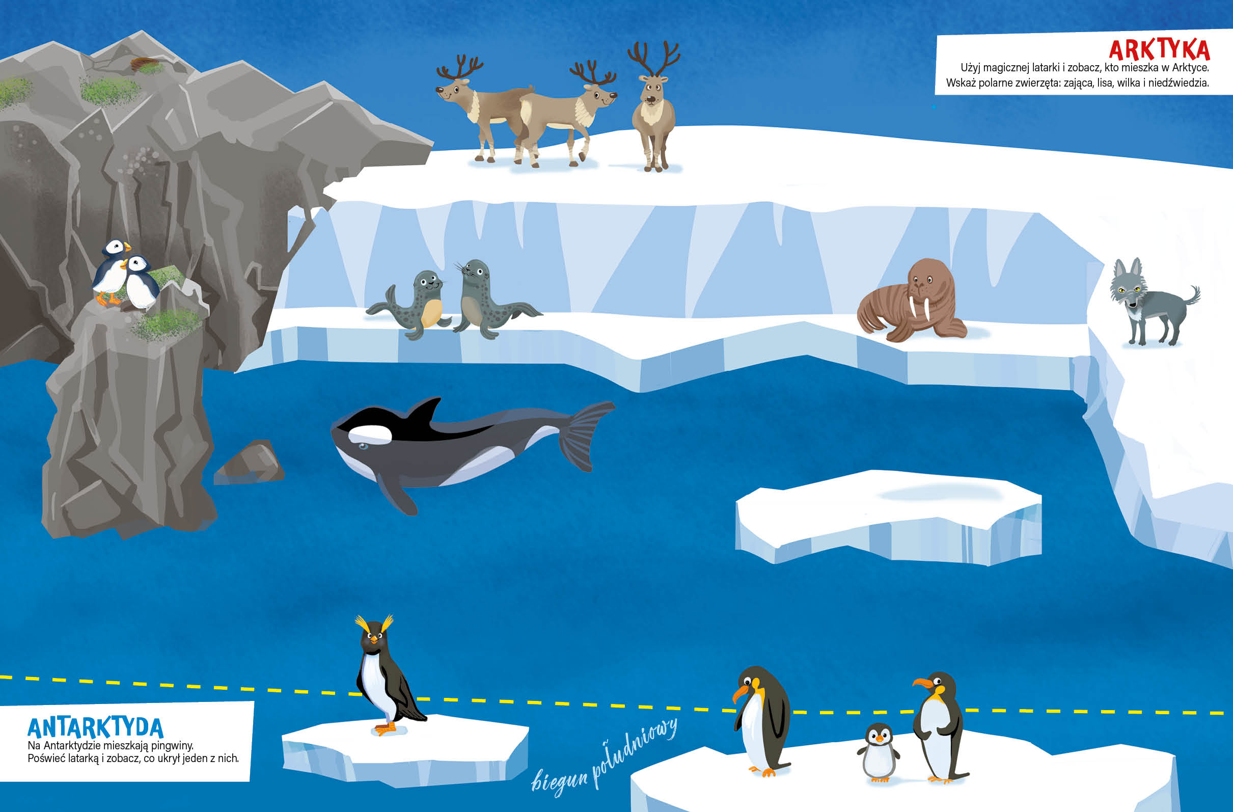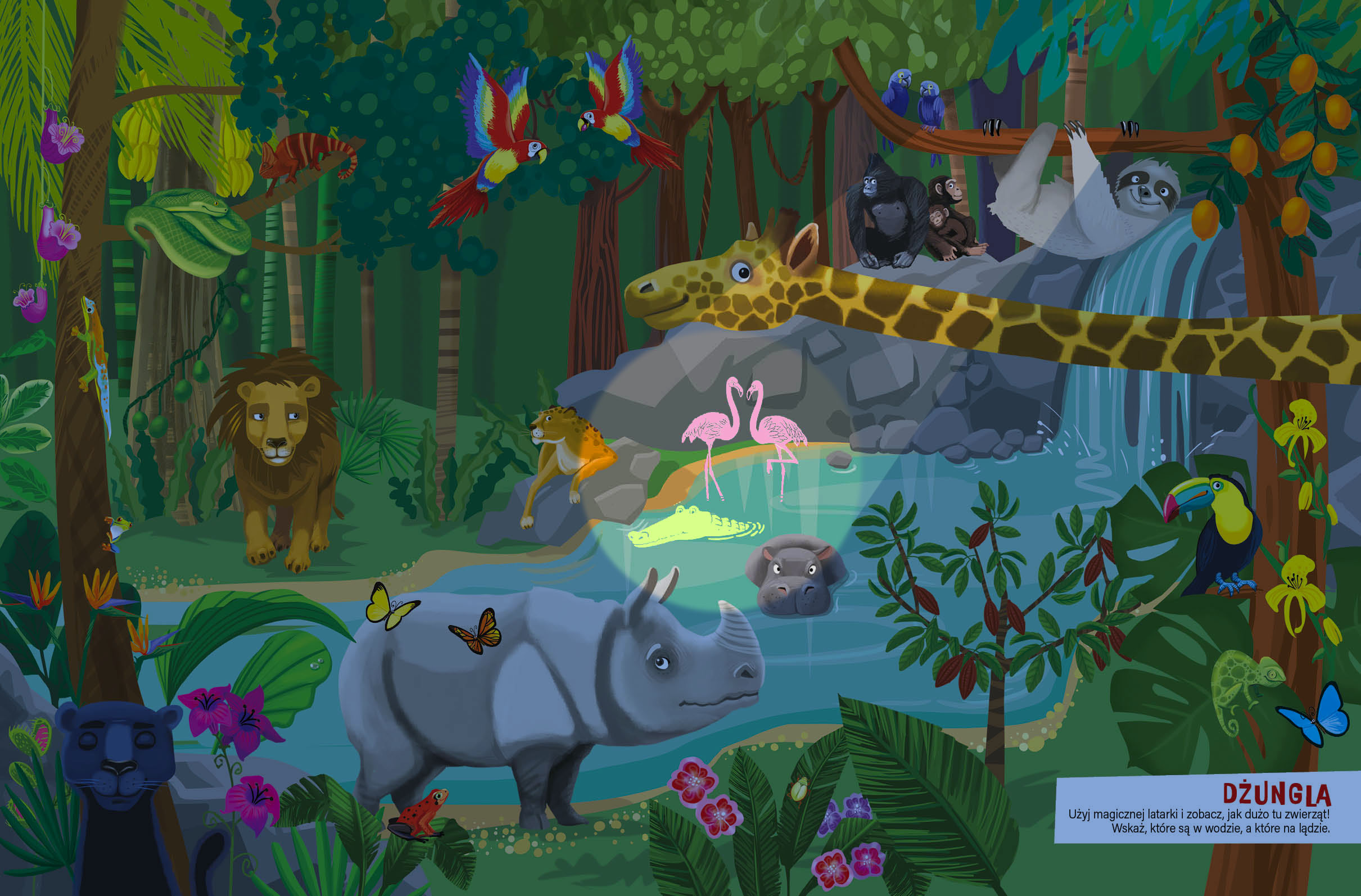 Na kolejnych stronach tej niezwykłej książki dzieci poznają afrykańską pustynię, dżunglę, morskie głębiny, mroźne bieguny, a także las i miasto. Kiedy włączą magiczną latarkę, stanie się coś niezwykłego – na ilustracjach pojawią się dodatkowe elementy. I to w różnych kolorach! Następnie dzieci sprawdzą swoją spostrzegawczość, odpowiadając na pytania. Ta książka to mnóstwo wspaniałej zabawy dla małych czytelników!