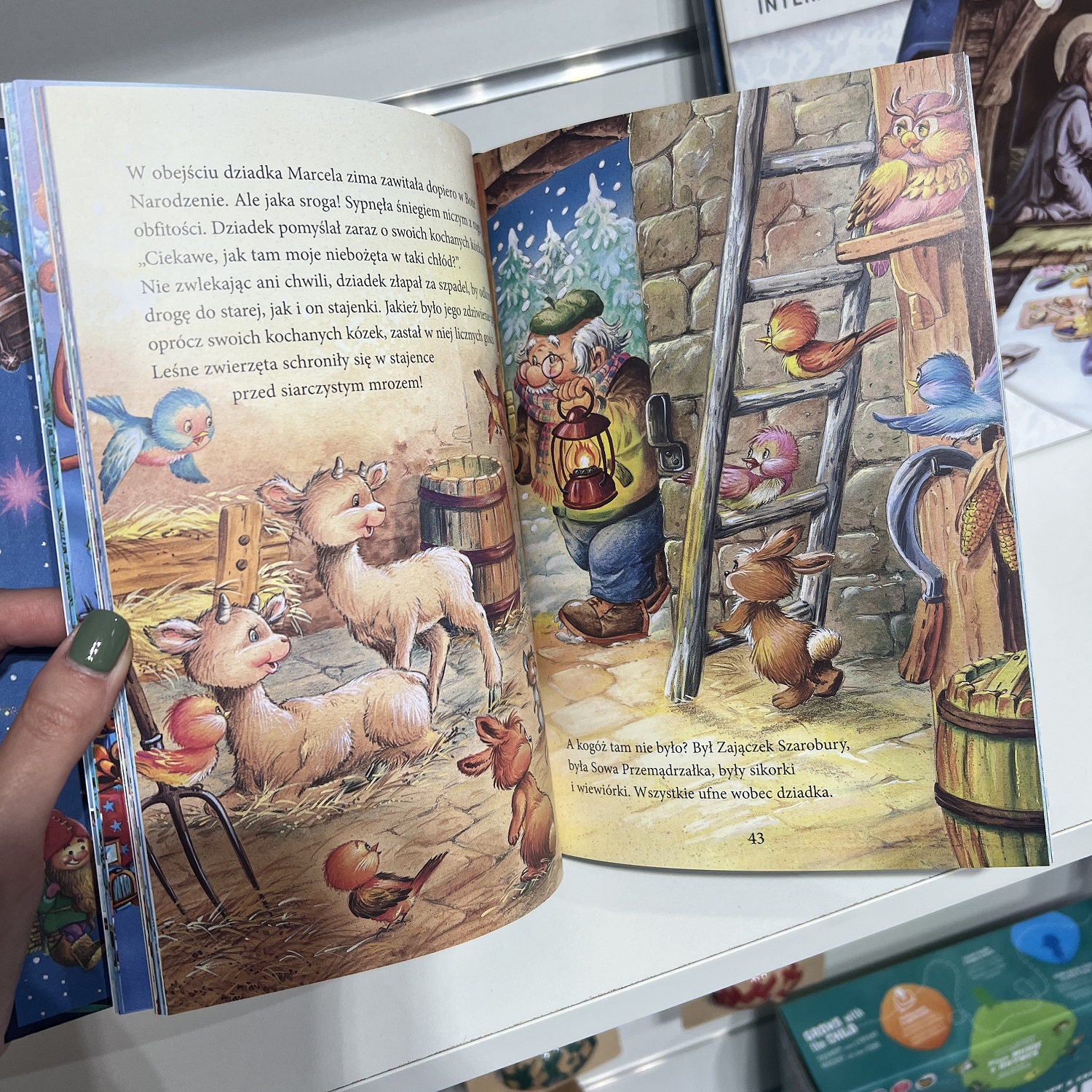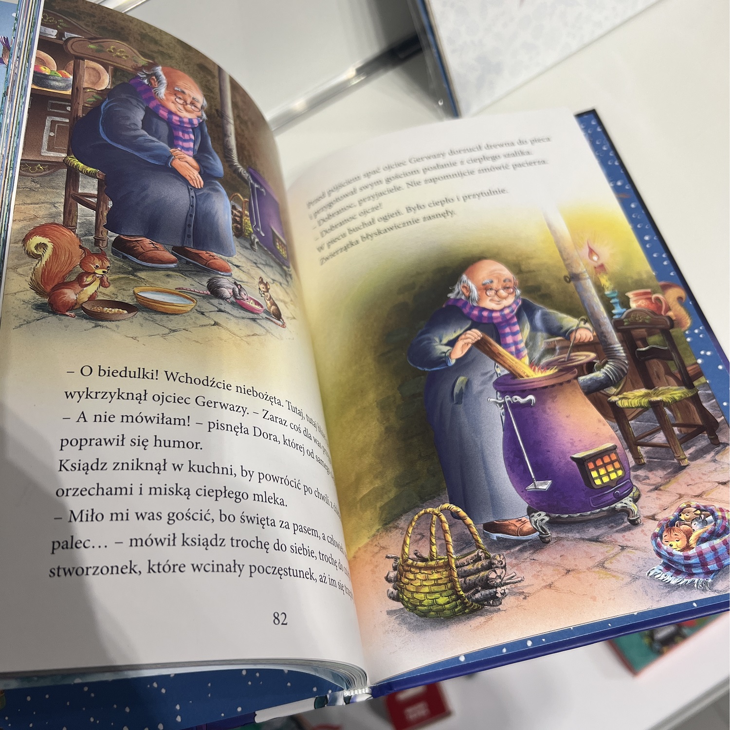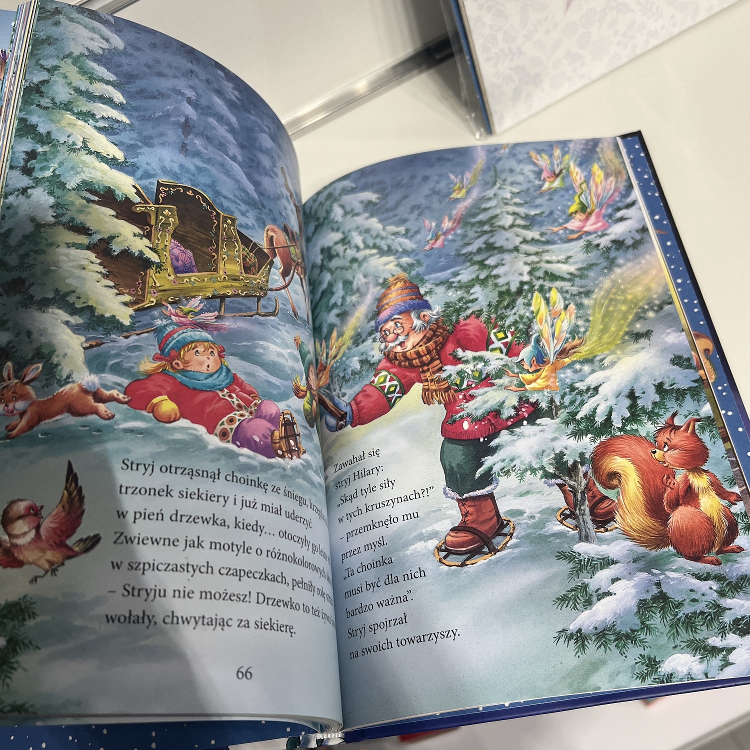 Dzieci kochają, kiedy opowiada im się o Świętym Mikołaju! Ta urocza, pięknie ilustrowana książka przenosi małych czytelników w magiczny i radosny świat całkiem podobny do naszego, tyle że oprócz ludzi żyją w nim Święty Mikołaj, elfy leśne zwane Troszkami i Pani Zima. W opowiadaniach przeczytamy między innymi o liście do Świętego Mikołaja, o podbiegunowej fabryce zabawek, o czarodziejskich piernikach, o aniołkach, o cudownej choince, a także o dobrodusznym zakonniku Gerwazym. W książce znajdują się dodatkowo wskazówki, jak wykonać piękne ozdoby bożonarodzeniowe, oraz przepisy na wykwintne świąteczne ciasteczka i pierniki.