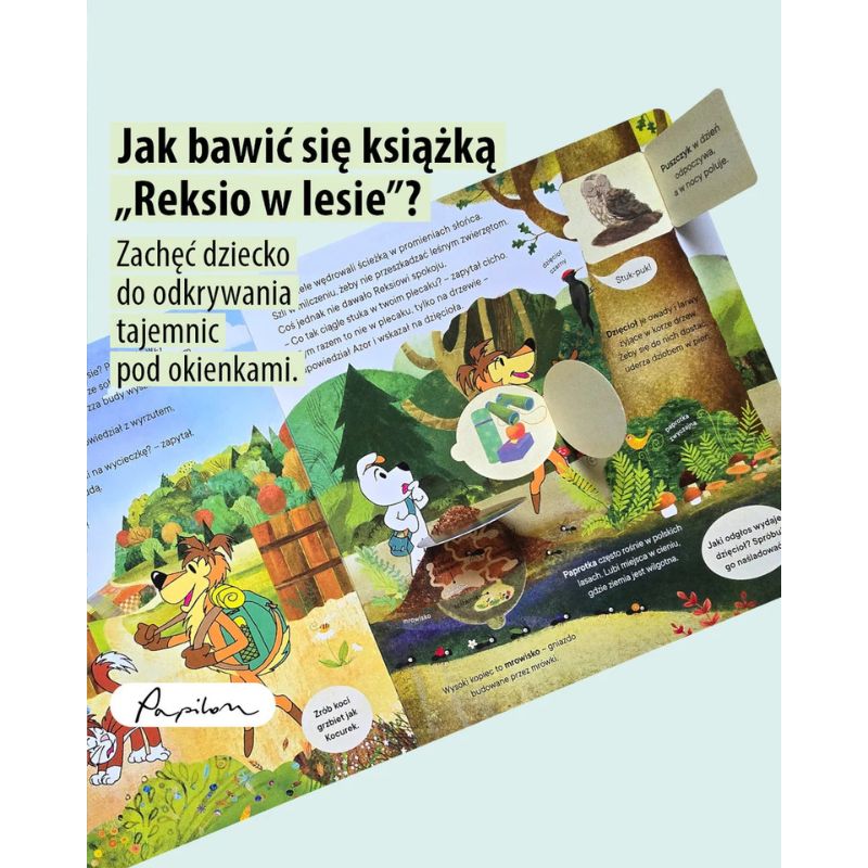 Dziecko pozna różne leśne zwierzęta i rośliny oraz odkryje w sobie ciekawość świata. Książka wspiera rozwój umiejętności poznawczych: spostrzegawczość, pamięć i koncentrację. Z kochanym pieskiem Reksiem nauka nie pójdzie w las!