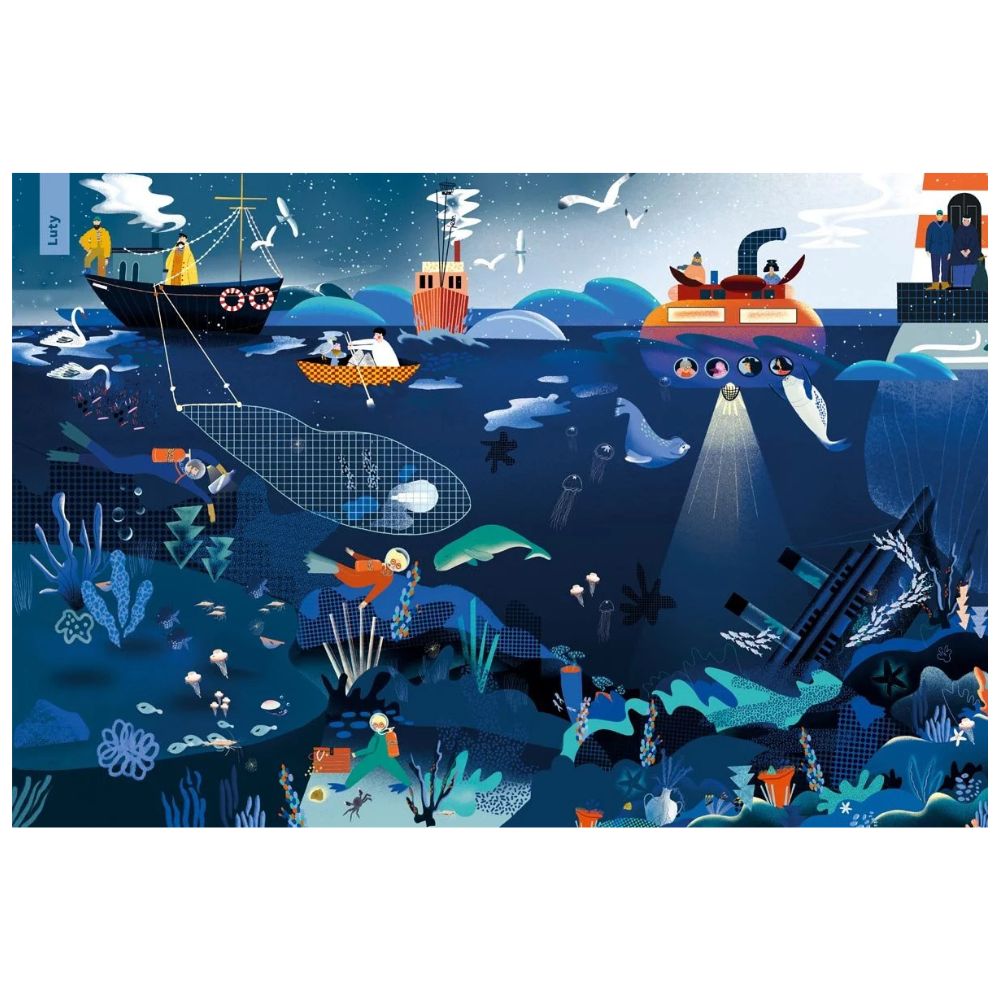 Zapraszamy nad morze! W jego toni spotkamy foki, flądry, meduzy, ławice śledzi i inne ciekawe stworzenia. Poznamy też wielu mieszkańców pobliskiej miejscowości, m.in. przyjaciółki Pamelę i Wiolettę, babcię Helenę i jej pudlicę Loczkę, górala Filipa czy ratownika, który o kondycją fizyczną dba cały rok. Oczywiście wpadniemy również na lody i do latarni morskiej, a także będziemy szukać bursztynów na plaży i listu w butelce.