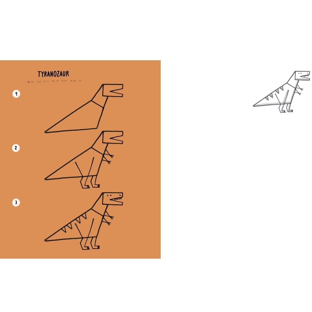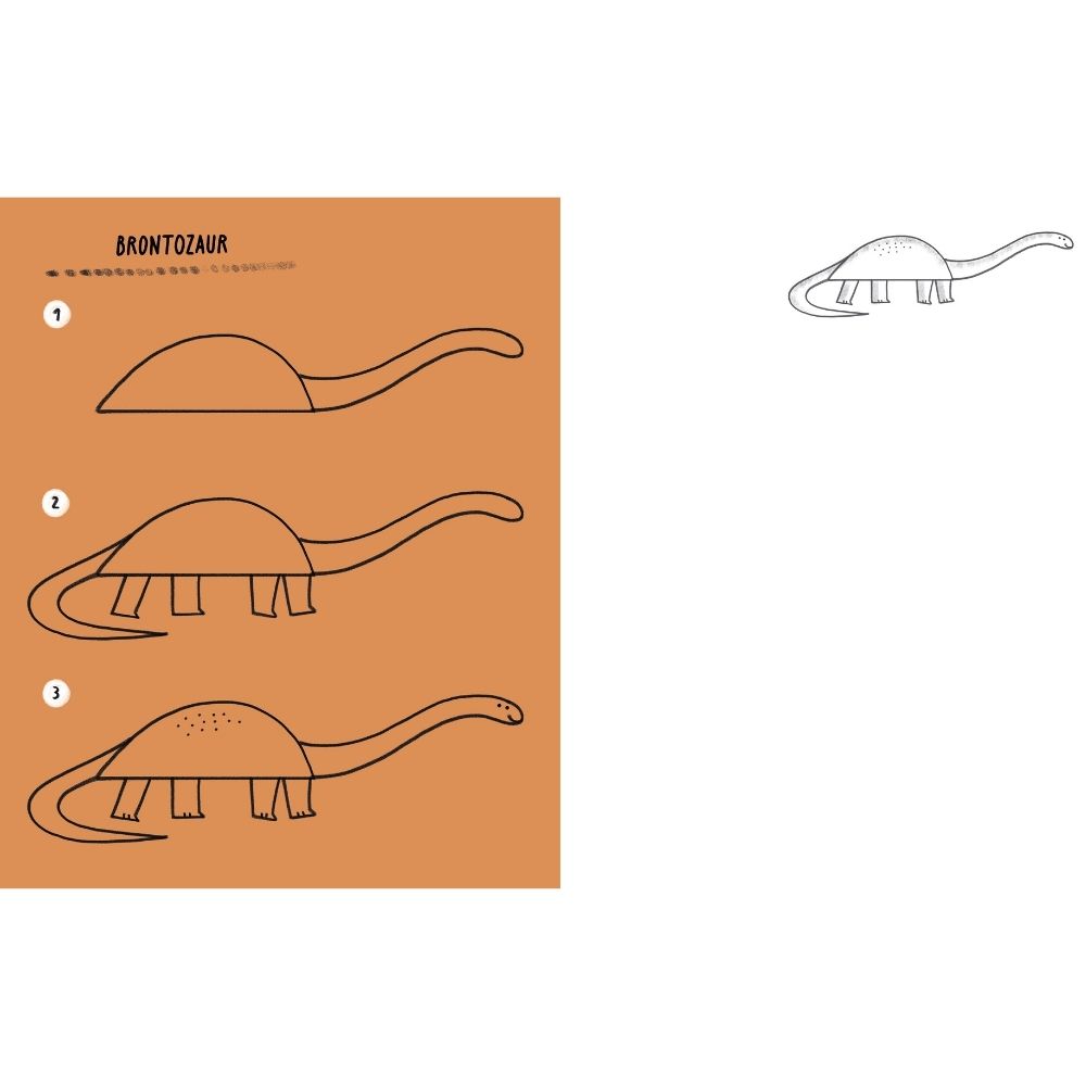 Kochasz rysować, ale masz wrażenie, że nie zawsze ci to wychodzi? Uwielbiasz dinozaury i inne prehistoryczne gady? Z tym zeszytem ćwiczeń w mig nauczysz się jak narysować tyranozaura, stegozaura, ichtiozaura czy iguanodona. Proste instrukcje pokażą ci, jak krok po kroku przy pomocy kilku ruchów ołówkiem czy flamastrem wyczarować legendarne stworzenia. Nie potrzebujesz nawet zeszytu, bo w książce zaplanowano specjalne miejsce na twoje szkice. Rysowanie to nie tylko świetna zabawa, ale także ćwiczenie cierpliwości i ręki, co ułatwia późniejszą naukę pisania.
