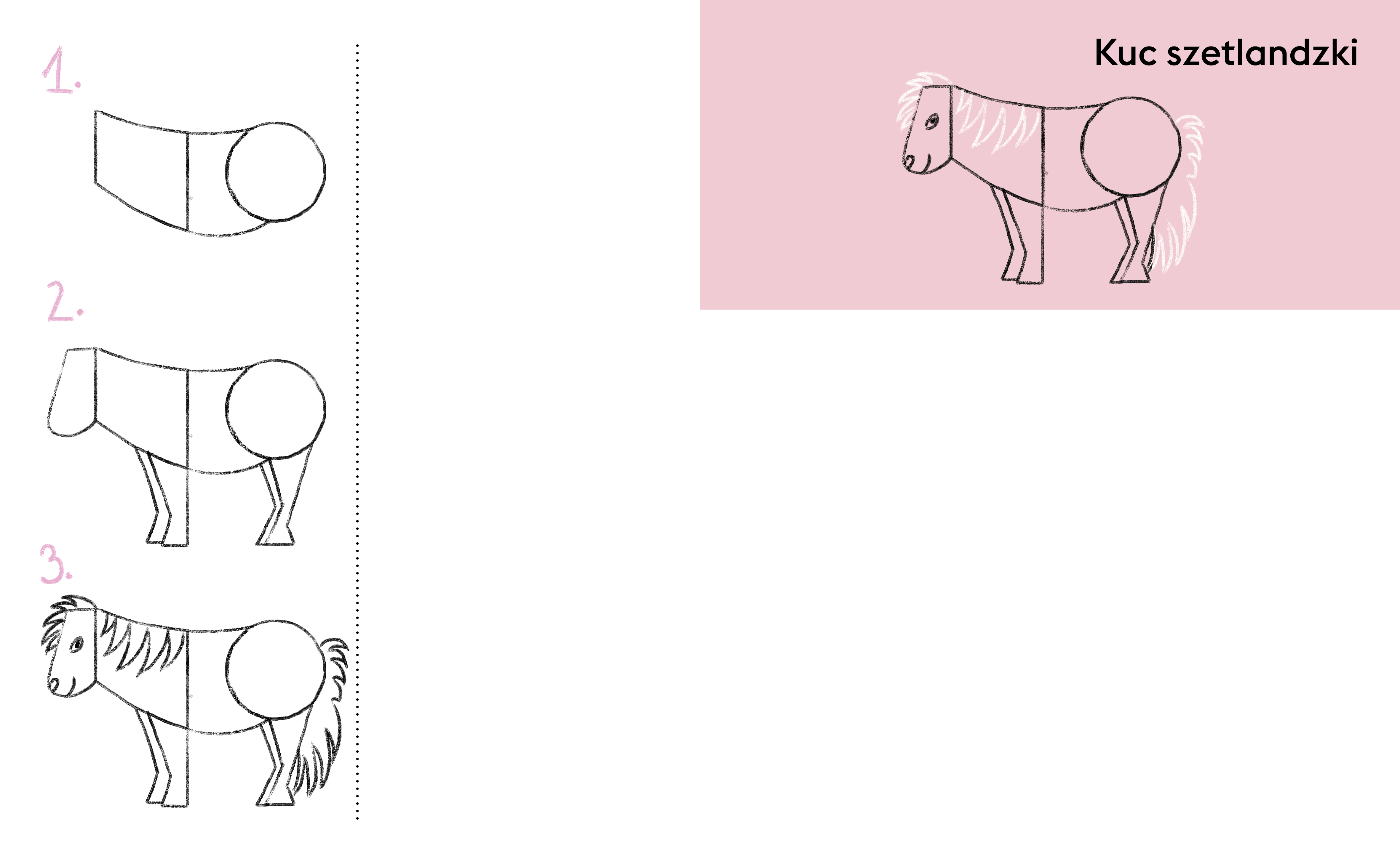 Proste instrukcje pokażą ci jak krok po kroku, przy pomocy kilku ruchów ołówkiem czy flamastrem wyczarować wspaniałe rysunki przedstawiające urocze kucyki, magiczne jednorożce czy konie w galopie.