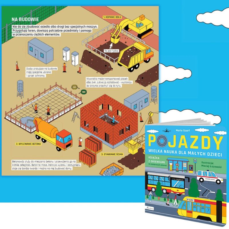 Żadne dziecko nie jest za małe, żeby opowiadać mu o pociągach, samolotach, stacji kosmicznej oraz innych pojazdach i maszynach. Co można przewozić pociągami? Gdzie na statku śpią marynarze? Jak wygląda kabina pilota samolotu? Czy w tramwaju jest kierownica? Czy na stacji kosmicznej hoduje się rzodkiewki? Na te i inne dziecięce pytania odpowiada ta książka.
