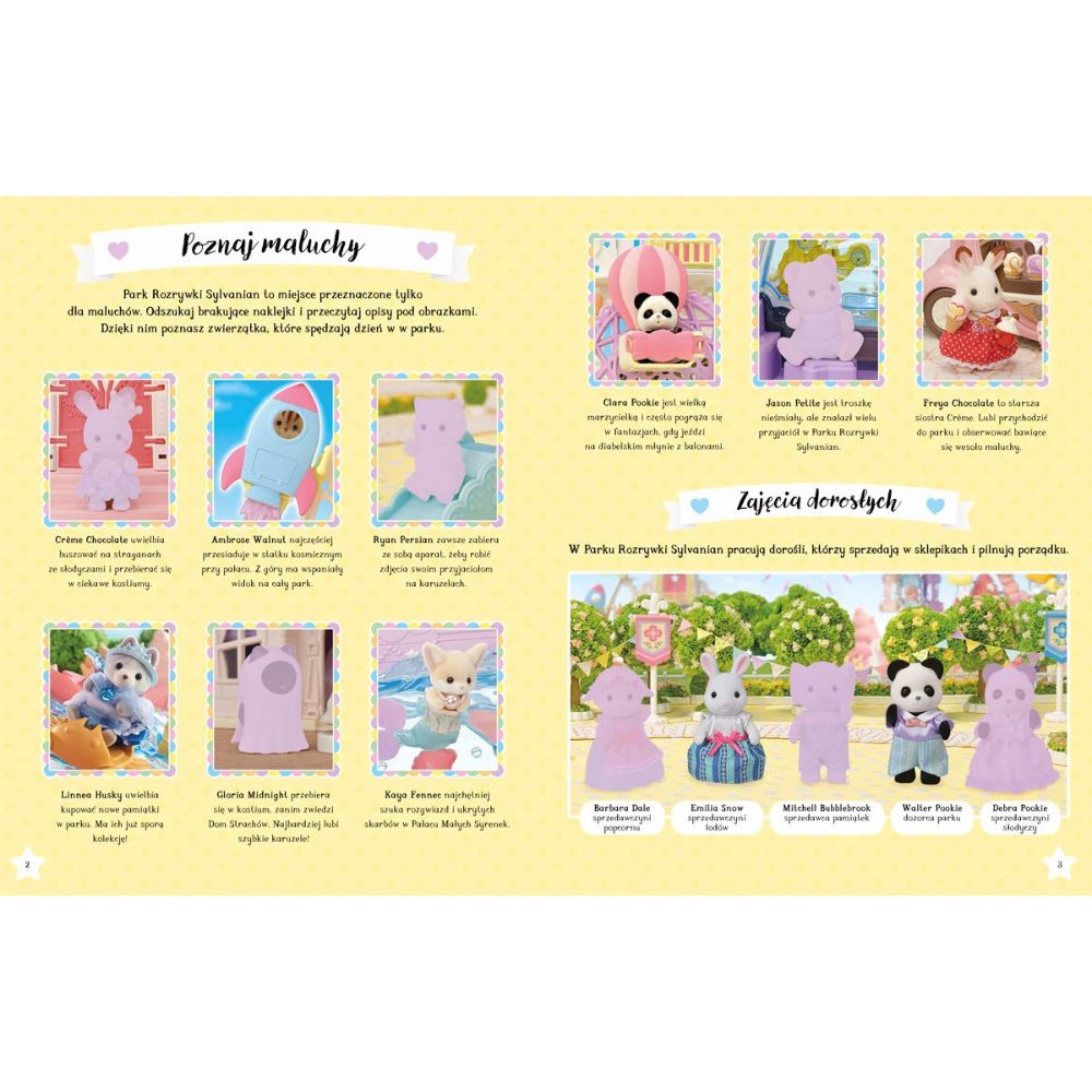 Cechy książki z naklejkami "Dzień w parku rozrywki Sylvanian":