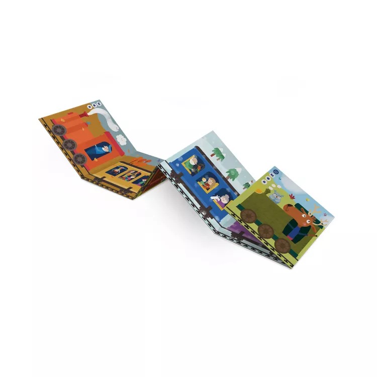 Książka wzbogacona jest piosenkami, wierszykami oraz wieloma dźwiękami i zabawnymi dialogami. Wraz z maszynistami, Panem Jeleniem i Panem Turkockim, dzieci wybiorą się na przejażdżkę pociągami. W każdym wagonie spotkają ciekawych pasażerów i razem z nimi będą obserwować przyrodę zmieniającą się wraz z kolejnymi porami roku.