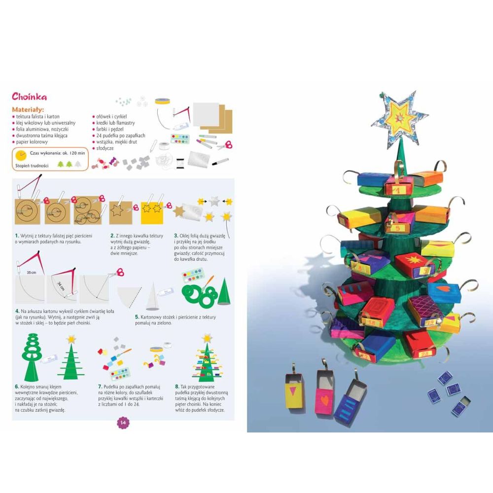 Książka z wzorami ozdób na zimę, na święta Bożego Narodzenia i ozdób choinkowych, wywodzacych się lub nawiązuacych do polskiej tradycji. Wykonanie każdej ozdoby jest przedstawione w sposób przystępny i klarowny. Każdy opis opatrzony jest kilkoma ilustracjami i zdjęciami. Atutem książki jest nie tylko opracowanie merytoryczne, ale także wzorowa oprawa graficzna.