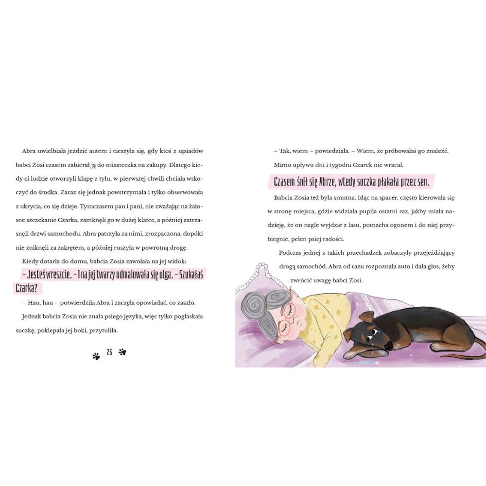 Poznaj wzruszającą historię Abry – wesołej suczki o czekoladowych oczkach i zawsze uśmiechniętym pyszczku, która mieszka u troskliwej babci Zosi. Ich codzienność pełna jest spacerów, zabawy i bliskości. Wszystko zmienia się, gdy na ich drodze pojawia się Czarek – przestraszony, głodny i samotny piesek. Babcia Zosia nie waha się ani chwili i daje mu nowy dom. Od tej pory Abra i Czarek tworzą duet najlepszych przyjaciół, których łączy wyjątkowa więź.
