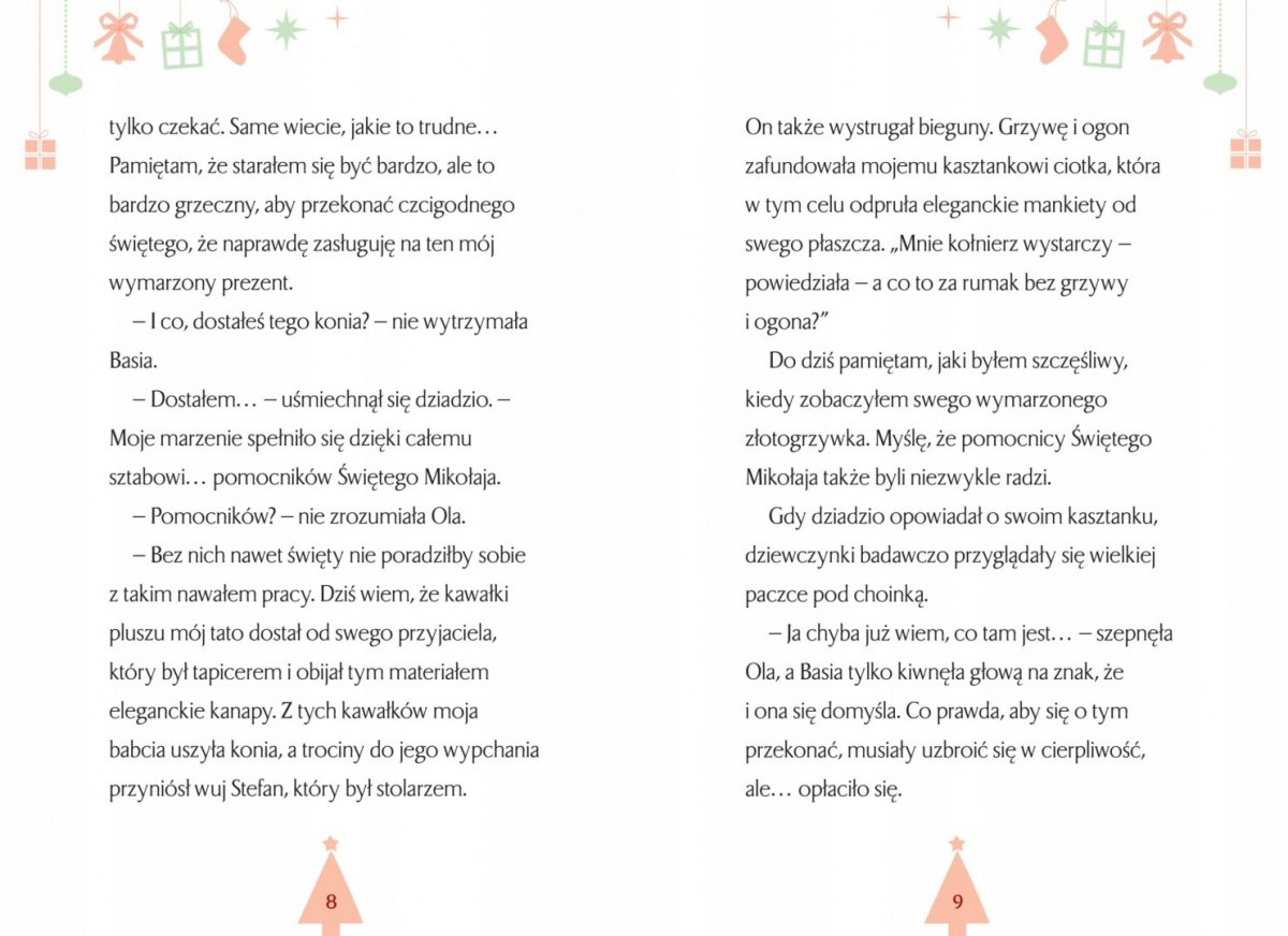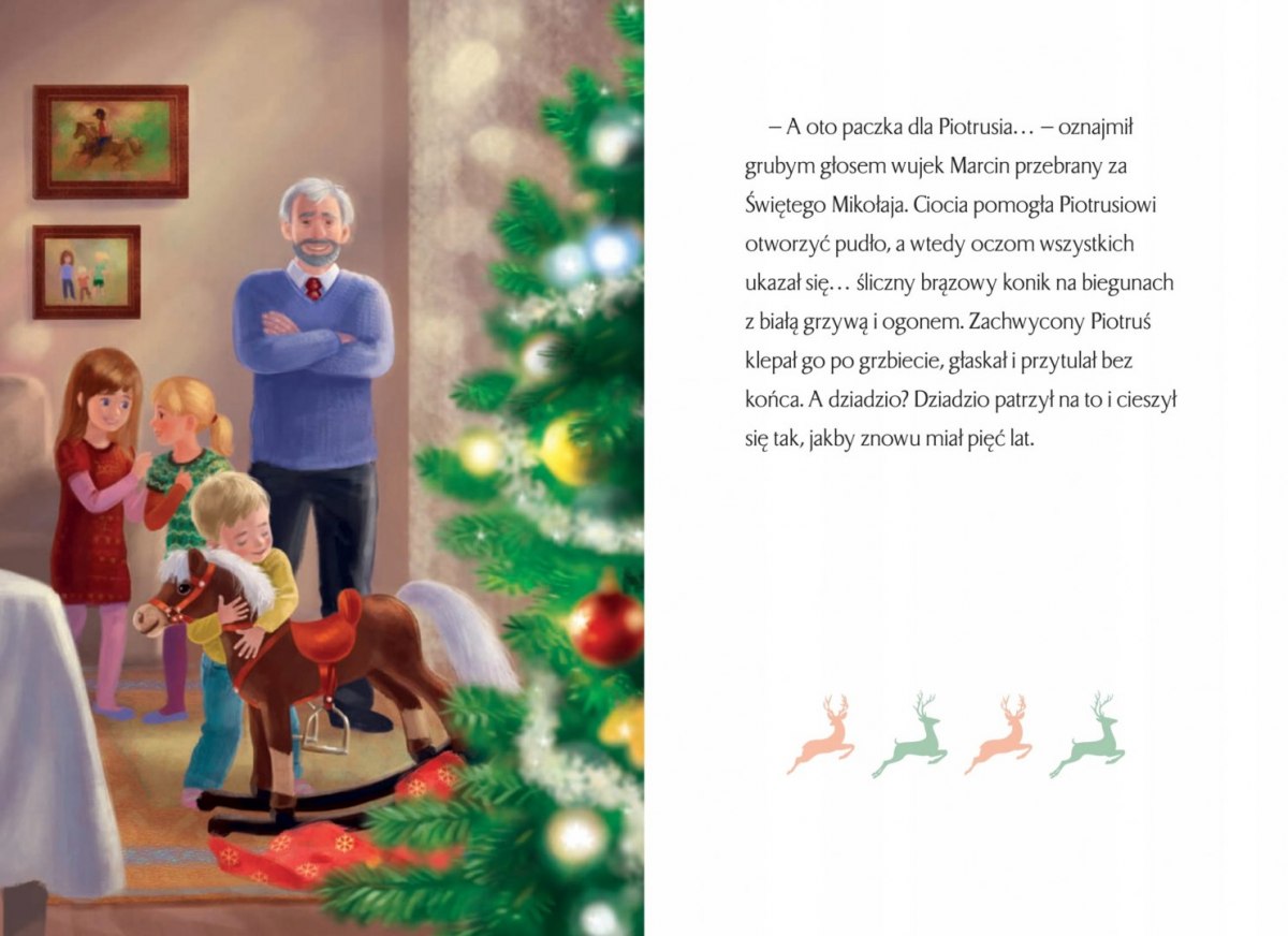 Święta Bożego Narodzenia to magiczny czas. Jest bowiem coś niezwykłego w przygotowywaniu wigilijnych potraw, strojeniu drzewka własnoręcznie zrobionymi ozdobami, czekaniu na pierwszą gwiazdkę i wymarzone prezenty. W tym dniu zdarzają się też rzeczy nadzwyczajne. Piesek i papużka znajdują nowy dom, a dwie małe dziewczynki zasypiają szczęśliwe w piętrowym łóżku, którego do tej pory nie miały.