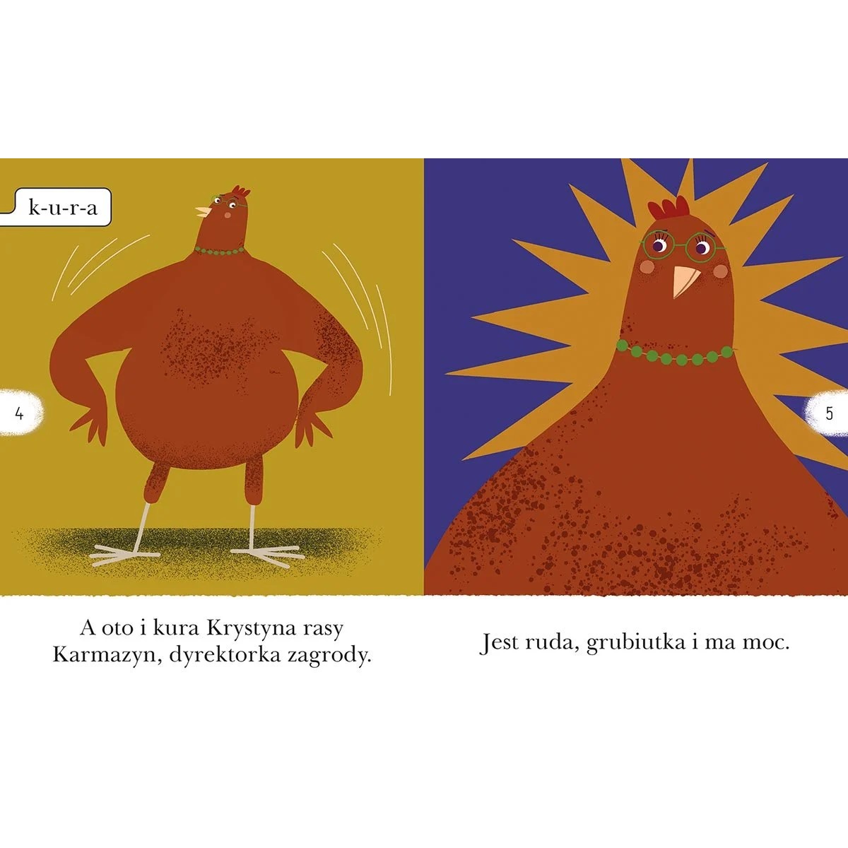 Kura Krystyna to dyrektorka zagrody "Stokrotka". Jest ruda, grubiutka i mądra! Cieszy się szacunkiem i sympatią wszystkich mieszkańców. Dlatego kiedy wpada w tarapaty, indyk i kogut nie wahają się ani chwili, by jej pomóc.