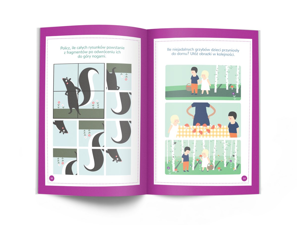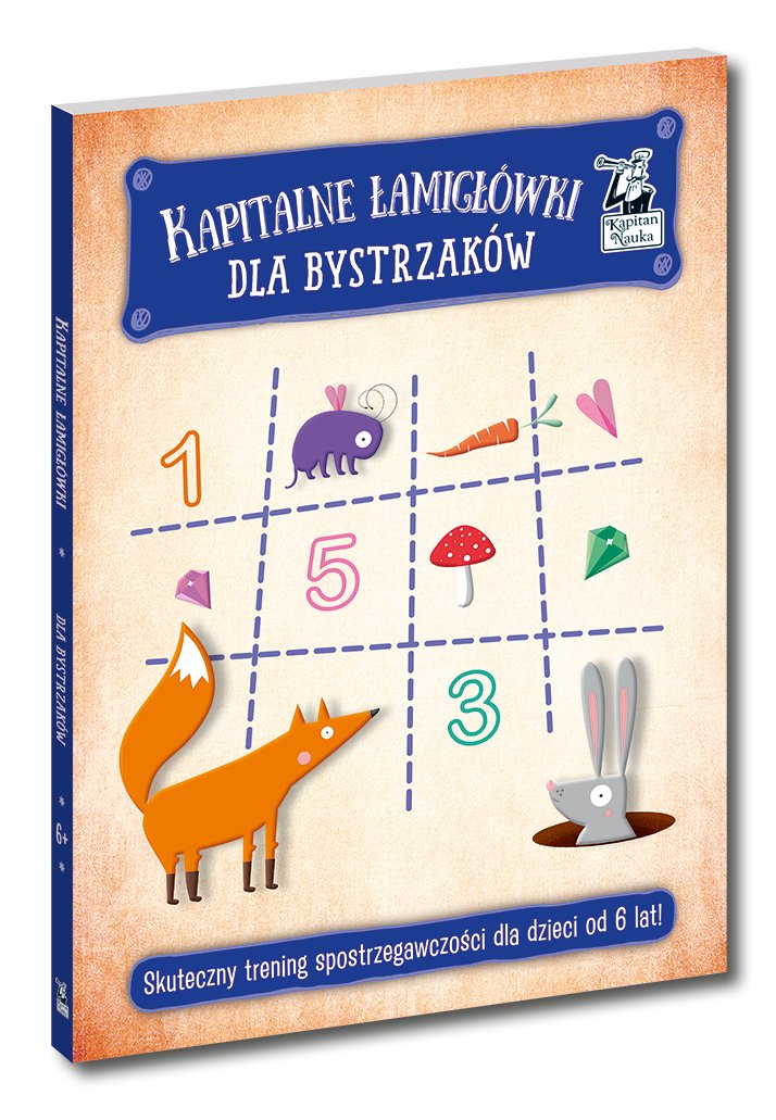 Jak znaleźć wyjście z labiryntu, zabierając ze sobą jak najwięcej skarbów, jaka jest właściwa kolejność wydarzeń w historyjce przedstawionej na obrazkach i jaki obrazek ukrywa się w puzzlach? Kapitalne łamigłówki dla bystrzaków gwarantują doskonałą zabawę, a przy tym doskonalą umiejętności analizowania wydarzeń i opowiadania o nich, dostrzegania zależności czasowych i przestrzennych oraz związków przycznowo-skutkowych. Proste puzzle i labirynty doskonalą umiejętność myślenia logicznego, a sudoku i zadania na liczenie w zakresie 20 rozwijają zdolności matematyczne. Proste polecenia z kapitalnymi ilustracjami Pauliny Zbylut to twórcza rozrywka dla dzieci w wieku powyżej 6 lat.