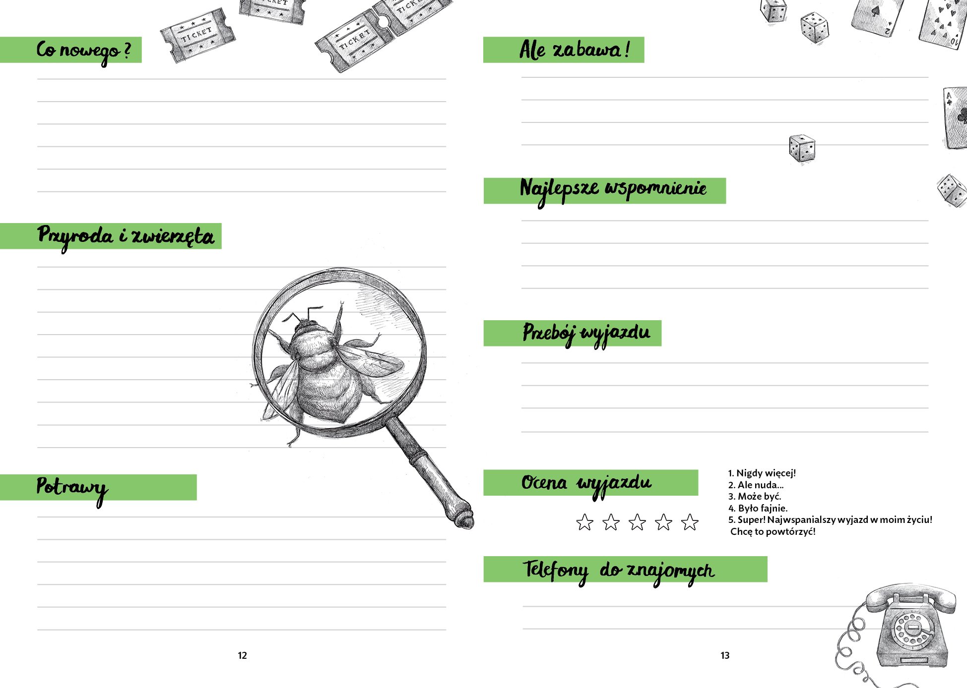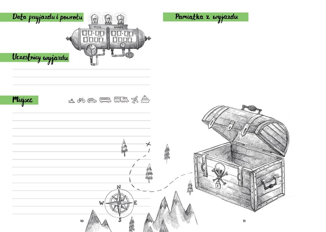 Podróżnik to rodzaj pamiętnika/dziennika podróży dla dzieci. Można w nim zapisać wszystkie cenne wspomnienia z wakacji, weekendów poza domem czy wycieczek szkolnych. Po latach Podróżnik posłuży do przywołania dziecięcych wspomnień. Na każdą wyprawę zarezerwowano 4 strony. Przygotowano specjalne miejsca, w które można wpisać daty wydarzeń oraz imiona uczestników. Dziecko może opisać swoje wrażenia oraz co nowego się dowiedziało czy nauczyło. Jest też strona do wklejania biletów, pamiątek, ulotek itp. oraz miejsce na zanotowanie nowych kontaktów. Każdy wyjazd można ocenić, przyznając odpowiednią ilość gwiazdek (od 1 do 5).