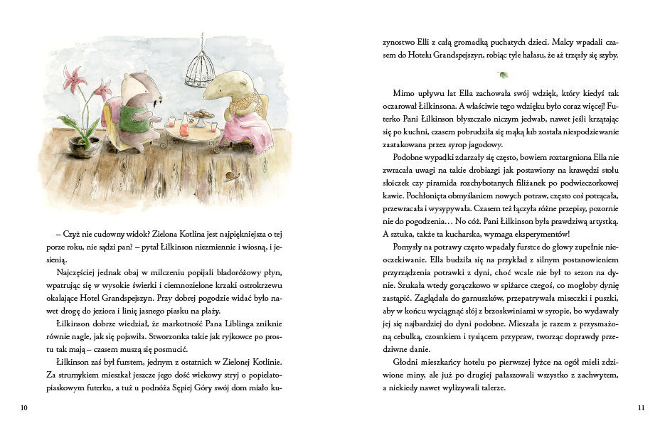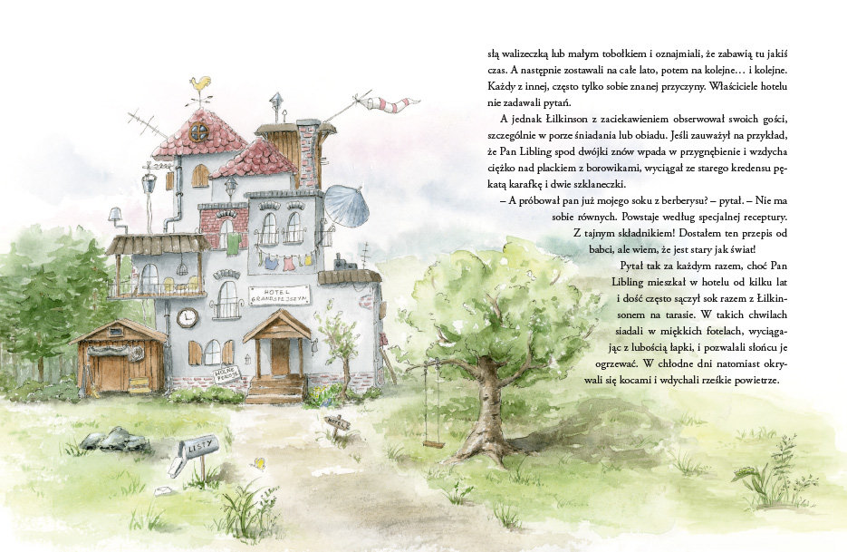 Hotel Grandspejszyn to miejsce magiczne. Ten, kto przestąpi jego skrzypiący próg i zostanie poczęstowany przez właścicieli - Łilkinsona i Ellę - szklaneczką soku z berberysu, poczuje się jak w domu. I może będzie chciał zostać już na zawsze...