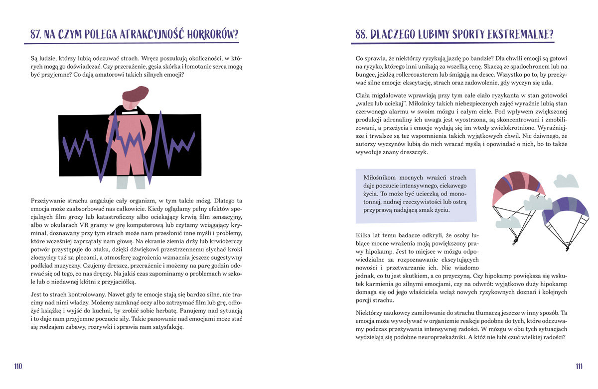 Czy wiesz, ile się mieści w głowie? Gdyby mózg był twardym dyskiem, mógłby przechowywać 3 miliony pełnometrażowych filmów albo 600 milionów utworów muzycznych. Czy można schudnąć od intensywnego myślenia? Dlaczego zeznania świadków różnią się, choć żaden z nich nie kłamie? Jakim cudem pamiętamy rzeczy, które nigdy się nie zdarzyły?