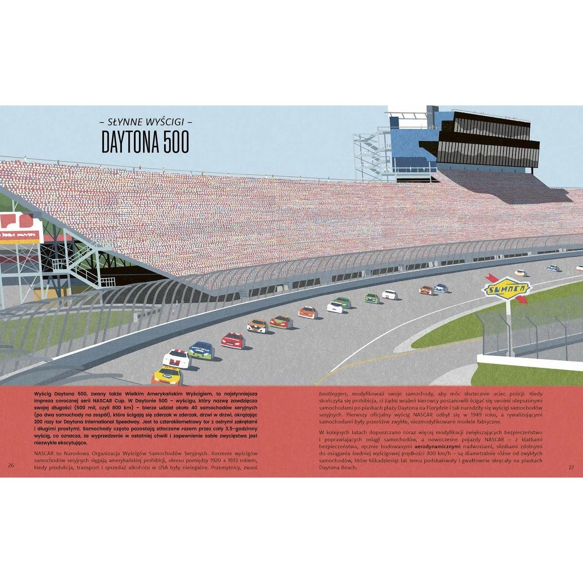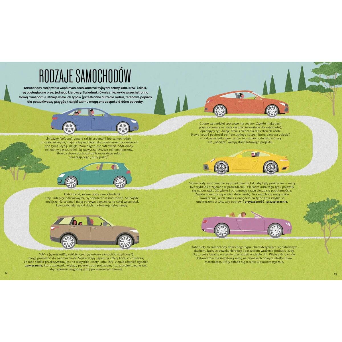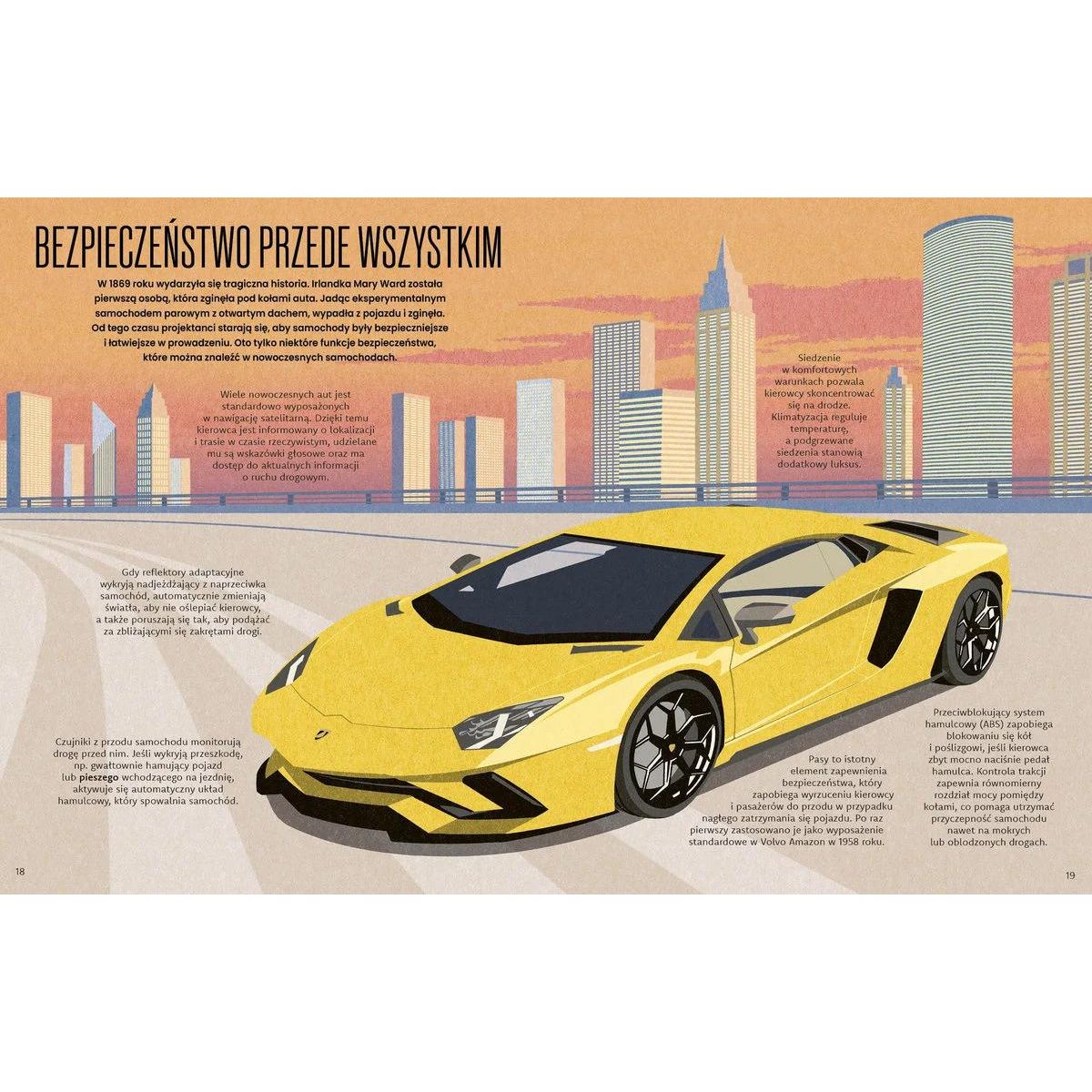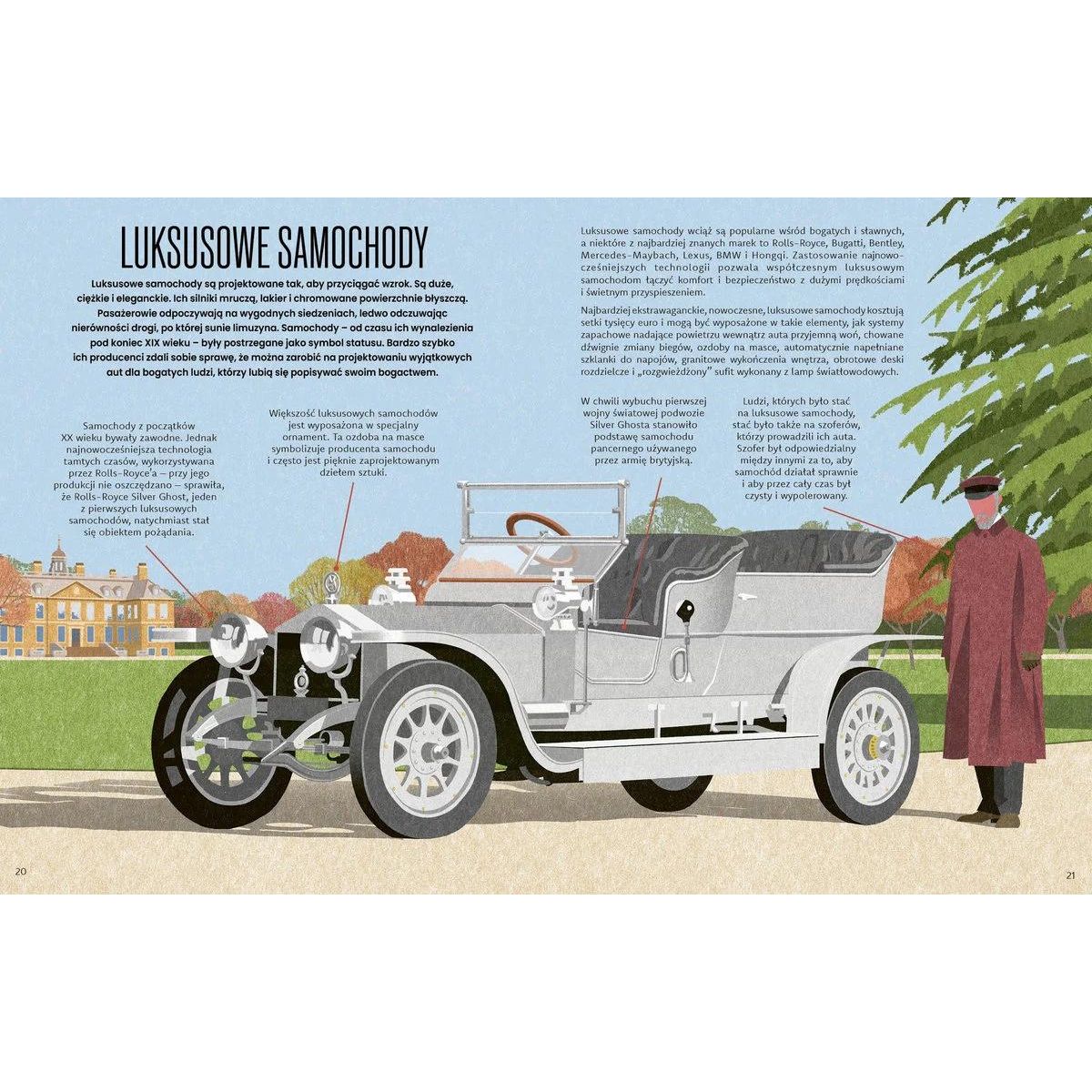 'Samochody' to niesamowicie zilustrowana opowieść o historii pojazdów z całego świata. Od Motorwagen Karla Benza po współczesne, superszybkie auta. Wypełniona kultowymi modelami, w tym ryczącymi hot rodami i luksusowymi limuzynami, jest również podróżą przez najszybsze i najważniejsze wyścigi wszech czasów, na przykład Isle of Man TT czy Grand Prix Monako.