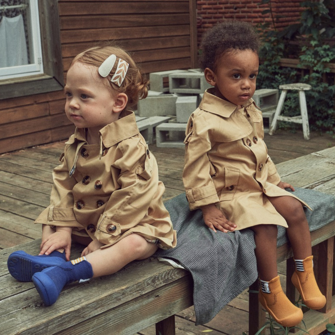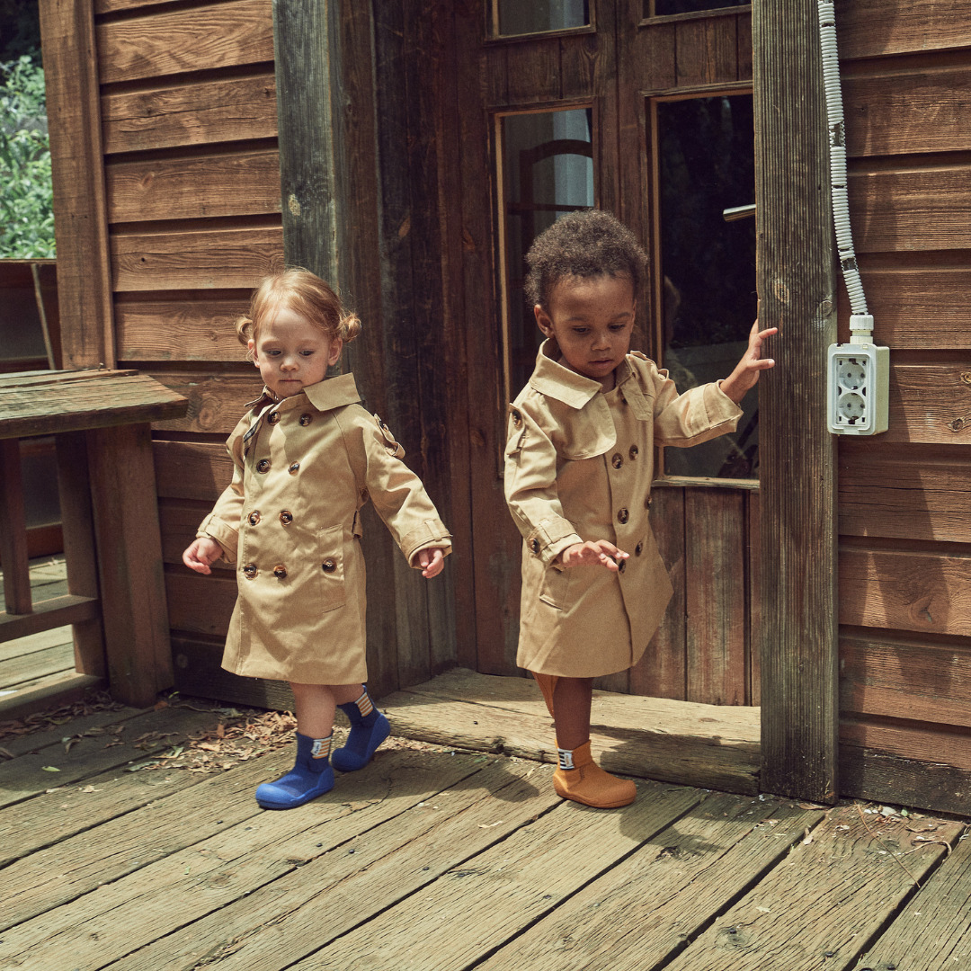 Buciki Attipas Rainboots imitujące kalosze. Cechami charakterystycznymi kolekcji jest wysoka dwuwarstwowa skarpetka i imitacja szerokiej gumy po bokach. Mimo że ten model świetnie się sprawdzi podczas zabaw w chłodniejsze dni, nie zalecamy skakania w nim po kałużach. Dlaczego? Ponieważ, w zgodzie z charakterystycznym designem każdego obuwia Attipas Baby Shoes, podeszwa jest wyposażona w delikatne otwory, które wspomagają naturalne oddychanie stópki.