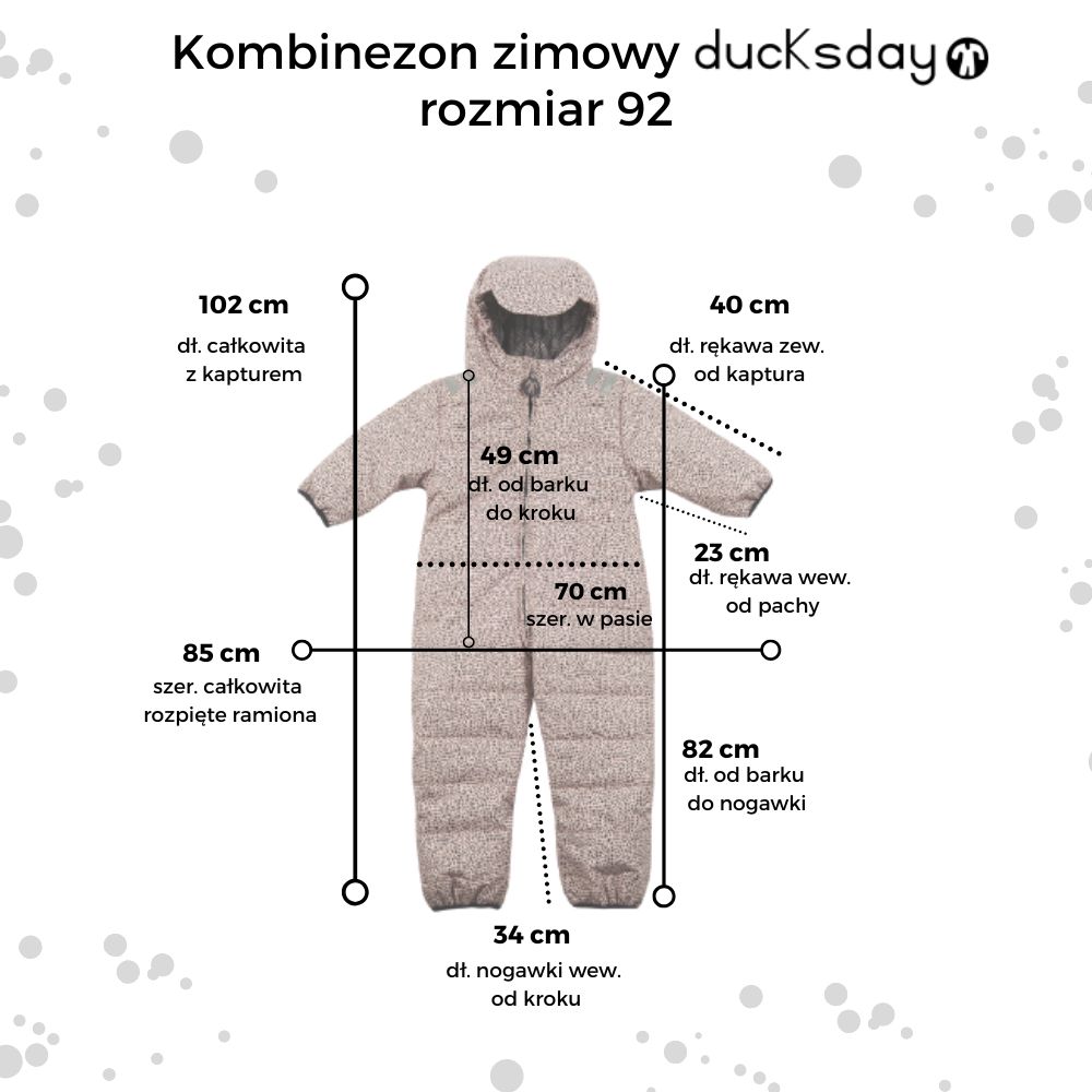Praktyczny kombinezon dla Maluszka belgijskiej marki Ducksday! Stworzony dla najmłodszych kombinezon ochroni dziecko przed złą, zimową pogodą sprawdzi się także podczas jesieni. Zapewni komfort podczas wycieczek lub spacerów na świeżym powietrzu.