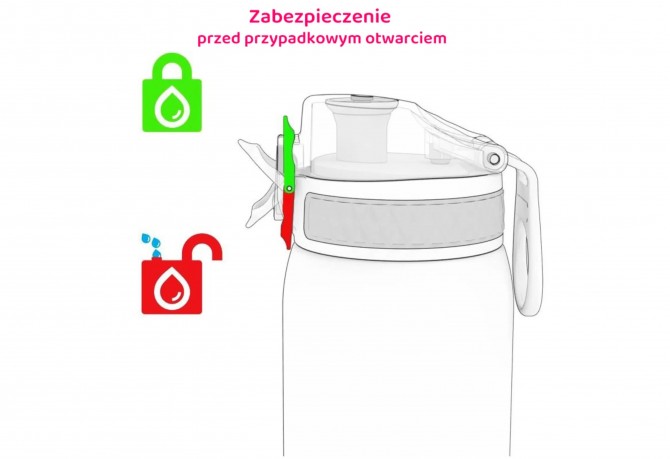 Butelki ION8 posiadają również blokadę bezpieczeństwa, która zapobiega przypadkowemu otwarciu podczas noszenia w torbie lub plecaku. Otwarcie wieczka chroniącego ustnik jest bardzo proste i wymaga tylko jednego palca. Ponadto, butelka zapewnia płynny, łagodny i równy przepływ wody, bez konieczności ściskania butelki lub ssania, co stanowi dodatkową wygodę.