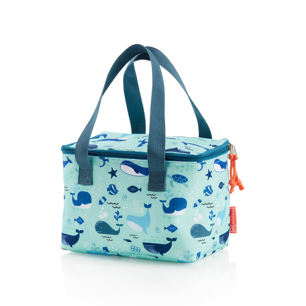 Ekologiczna termoizolacyjna torba lunchowa Save The Ocean wykonana z przetworzonych butelek PET. Utrzyma ciepłą jak i zimną temperaturę jedzenia w celu zachowania świerzości na dłużej. Posiada dużą komorę główną zamykaną na suwak oraz rączki do przenoszenia. Z tyłu jest miejsce na wpisanie danych kontaktowych. W środku wyściełana jest materiałem wodoodpornym, który dodatkowo łatwo wyczyścić. Doskonale sprawdzi się jako torba do szkoły, przedszkola czy na wycieczkę. Wymiary: 23 x 16 x 13 cm.