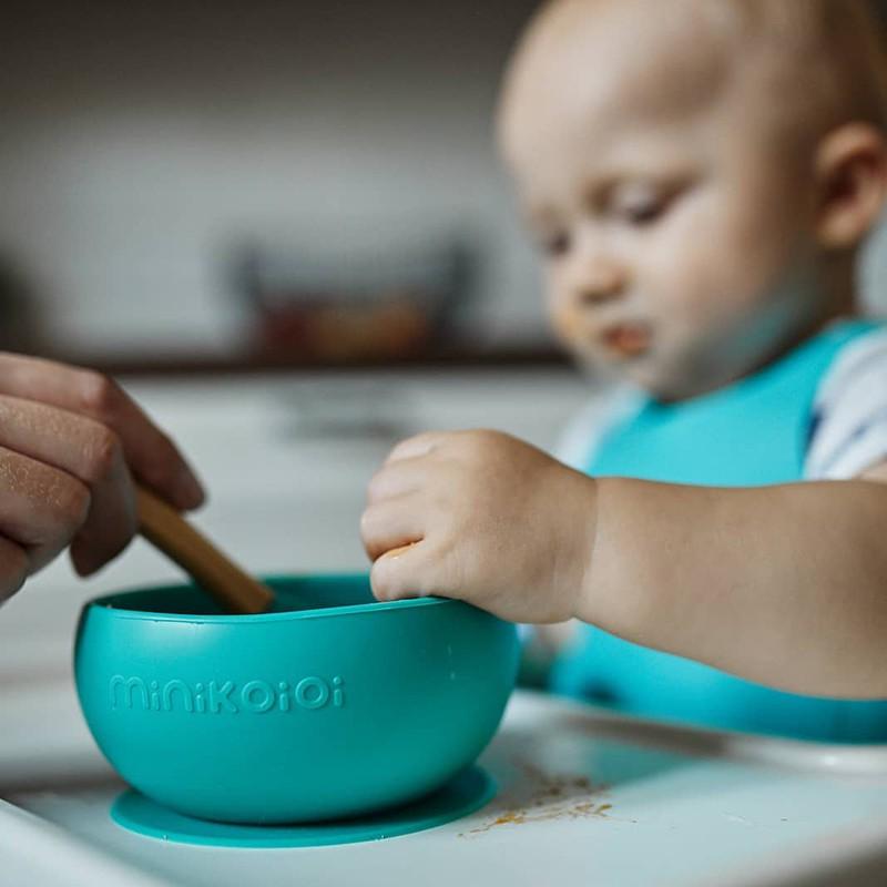 Silikonowa miseczka MINIKOIOI zaprojektowana do pierwszych samodzielnych posiłków, pomaga w rozwijaniu zdolności motorycznych. Zintegrowana podstawa z przyssawką zapobiega przesuwaniu i zrzucaniu miseczki przez dziecko w czasie jedzenia. Dzięki praktycznej pokrywce łatwo zamienić miseczkę w pojemnik do przechowywania żywności.