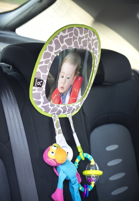 Funkcjonalne i innowacyjne lusterko służy do obserwacji dziecka podczas podróży samochodem. Łatwe w montażu i demontażu, mocowane jest do tylnego zagłówka fotela samochodowego, wówczas kierowca-rodzic może obserwować małego pasażera bez konieczności regulowania lusterka wstecznego. Produkt wyposażony jest w duże, wypukłe lusterko dające szerokie pole widzenia, oraz element za pomocą którego można regulować kąt widzenia. Lusterko posiada dwie zawieszki, do których możemy przyczepić zabawkę, smoczek czy kocyk przytulankę, które umilą czas podczas podróży. Idealny produkt dla mobilnych rodziców, przemieszczających się samochodem z małym dzieckiem.