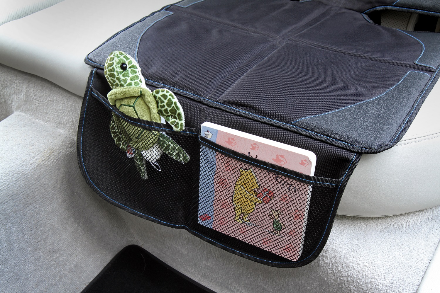 Uniwersalna mata pod fotelik stanowi bardzo praktyczny dodatek do wyposażenia samochodu. Ochroni samochodowe fotele przed zabrudzeniem oraz uszkodzeniami mechanicznymi. Dzięki podgumowanej dolnej warstwie mata nie przesuwa się. Odpowiednio wyprofilowana - zapewnia łatwy dostęp do pasa bezpieczeństwa, nie zasłania również mocowań ISOFIX. Co więcej, posiada też kieszeń idealną do przechowywania drobnych rzeczy.
