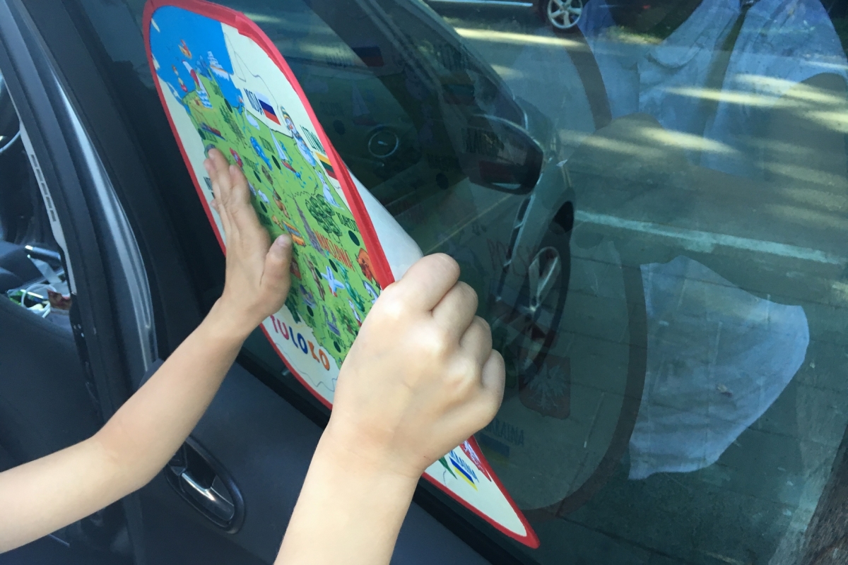 Dodatkowo w opakowaniu znajduje się naklejka „MAŁY PODRÓŻNIK”, którą można umieścić na szybie lub karoserii samochodu. Naklejka informuje, że w samochodzie jedzie dziecko.