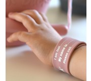Wystarczy, że umieścisz na zewnętrznej stronie opaski ważne informacje: imię i nazwisko dziecka oraz numer telefonu do rodzica. Ułatwi to kontakt z opiekunem oraz zaoszczędzi stresu. Wykonana z przyjemnego w dotyku silikonu ze sprężynującą blaszką w środku, dzięki której zaciska się na dziecięcej rączce. Takie rozwiązanie zapewnia doskonałe dopasowanie do nadgarstka. Rozmiar uniwersalny - pasuje nawet na dorosłą rękę.