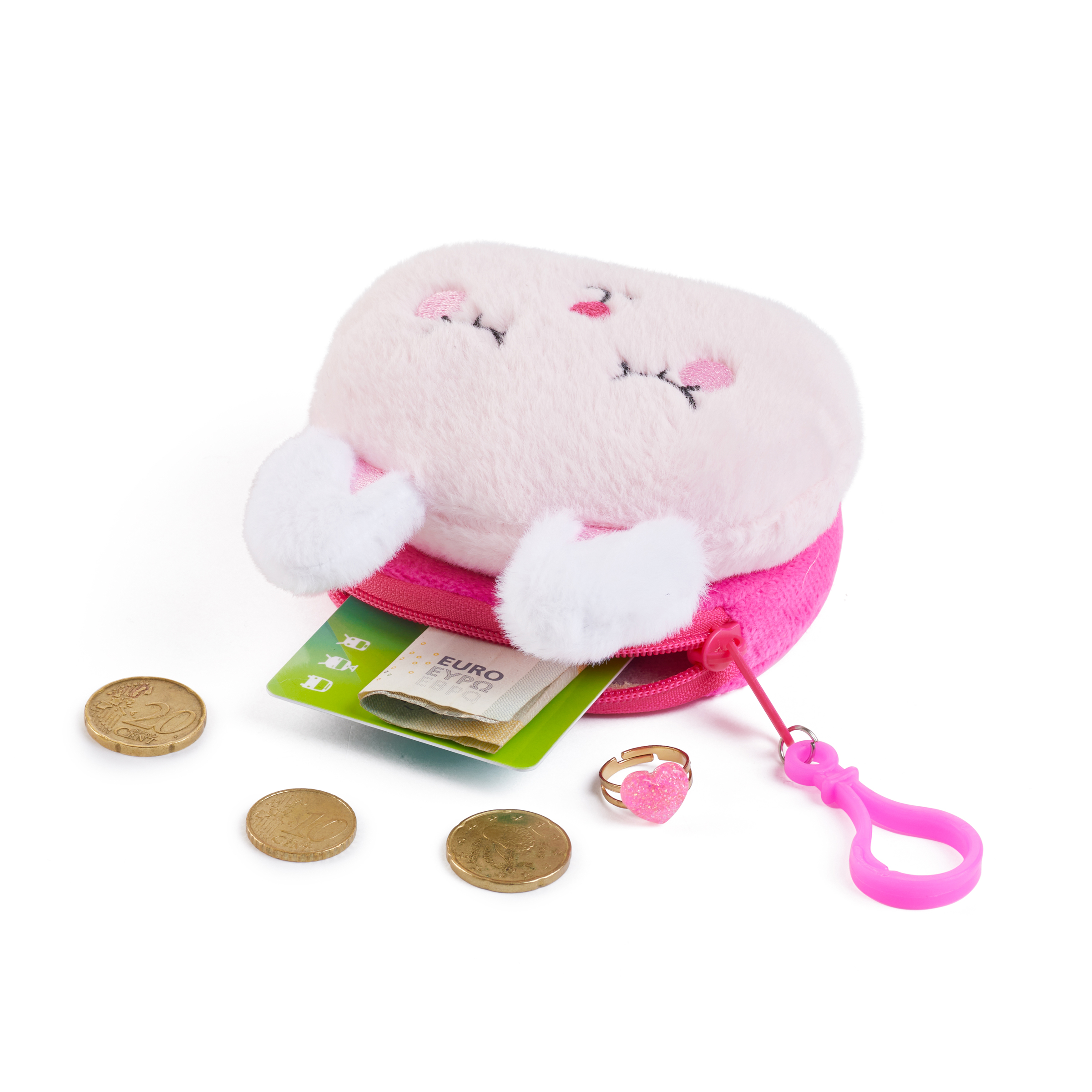 Mięciutki portfelik w kształcie królika marki Miquelrius łączy w sobie funkcjonalność i styl, stając się idealnym miejscem na przechowywanie pieniędzy i drobiazgów. Wyposażony w praktyczny karabińczyk, umożliwia łatwe przypięcie do plecaka, torebki czy szlufki od spodni, dzięki czemu zawsze jest w zasięgu ręki. To urocze akcesorium z pewnością zachwyci każde dziecko.