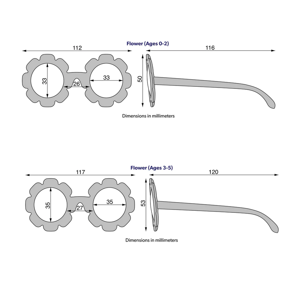 Okularki są w różnych przedziałach wiekowych zazwyczaj pasują do większości dzieci w podanym wieku. Jednak każde dziecko jest inne i dopasowanie zależy od wielkości główki malucha. Jeśli podejrzewasz, że Twoje dziecko może być między rozmiarami sugerujemy zamawianie mniejszego rozmiaru.