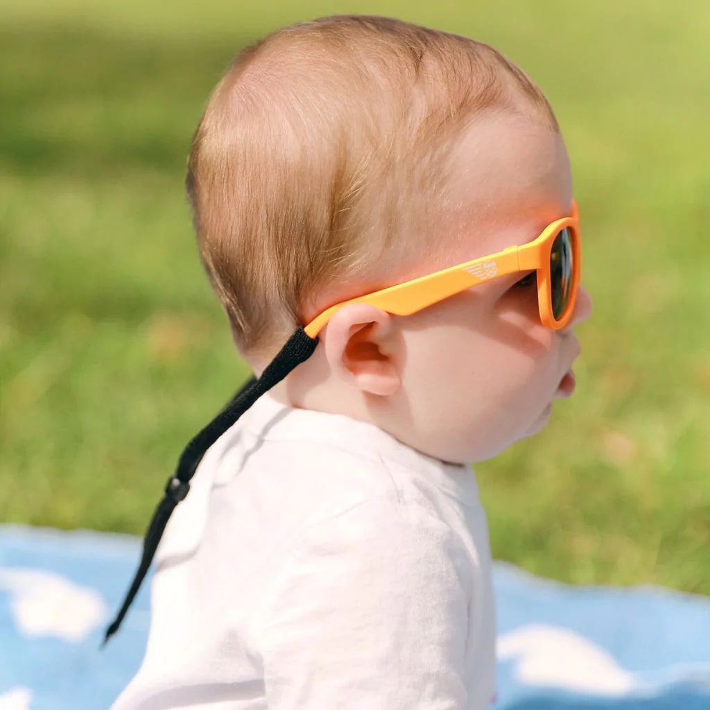 Okulary Babiators zostały zaprojektowane przez pilota myśliwca F-18. Okulary przeciwsłoneczne Babiators to prawdziwy hit w USA! Bezpieczna opaska Babiators, pomoże utrzymać te stylowe okulary na twarzy Twojego malucha podczas wspaniałych przygód. Koralik z tyłu pozwala dopasować rozmiar dlatego będzie odpowiednia zarówno dla rozmiaru 0-3 jak i 3-7+.
