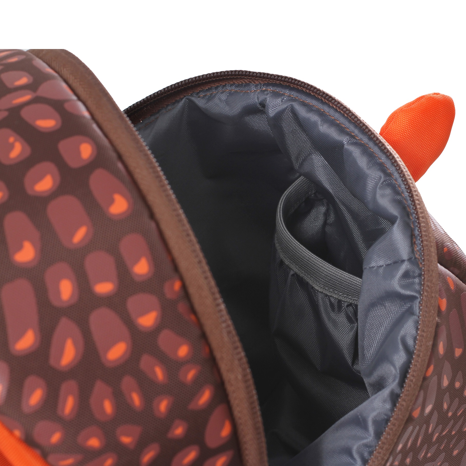 Duży plecak w kształcie dinozaura z myślą o starszych dzieciach. Sprawdzi się na spacerach, wyjazdach, a także w przedszkolu. W sporej komorze głównej zmieścisz wiele przedmiotów, łatwo również wyjmiesz je z wnętrza plecaka (zapięcie na suwak). Ramiączka są regulowane, dzięki czemu dopasujesz ich rozmiar do wzrostu swojego malucha. Plecak ma wygodny uchwyt. Wykonany z materiałów najwyższej jakości, sprawdzi się w różnych warunkach. Łatwo go wyczyścić. Plecak jest wygodny i praktyczny. To doskonały pomysł na prezent.
