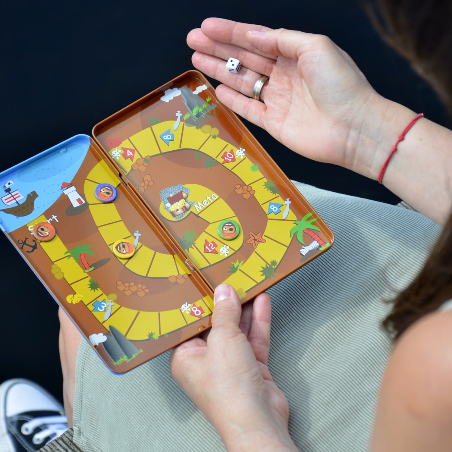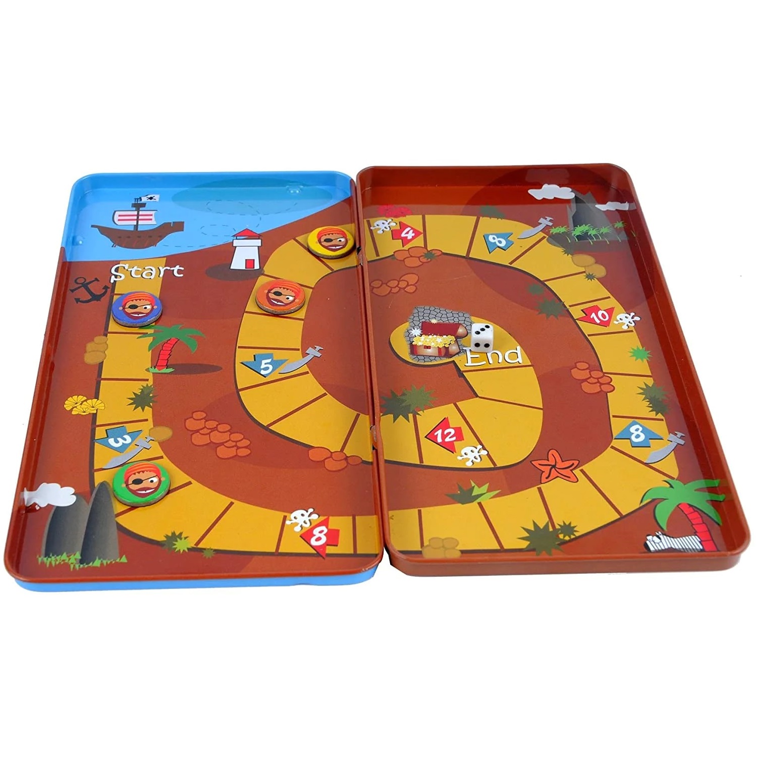 Jak grać: Każdy uczestnik ma po jednym pionku-piracie. Grę rozpoczyna najmłodszy gracz. Zawodnicy rzucają kostką i przesuwają swoje pionki o liczbę pól zgodną z wynikiem na kostce. Kiedy staniesz na polu z mieczem, idziesz do przodu o wskazaną liczbę pól. Trafienie na pole z czaszką powoduje, że musisz się cofnąć o wskazaną liczbę pól. Dotarcie do pola, na którym stoi pionek przeciwnika powoduje, że przeciwnik wraca pionkiem na start. Do skarbu można dotrzeć tylko wyrzucając dokładną brakującą ilość pól do przejścia. Jeśli wyrzucisz więcej niż potrzebujesz, musisz cofnąć się o tę liczbę oczek.