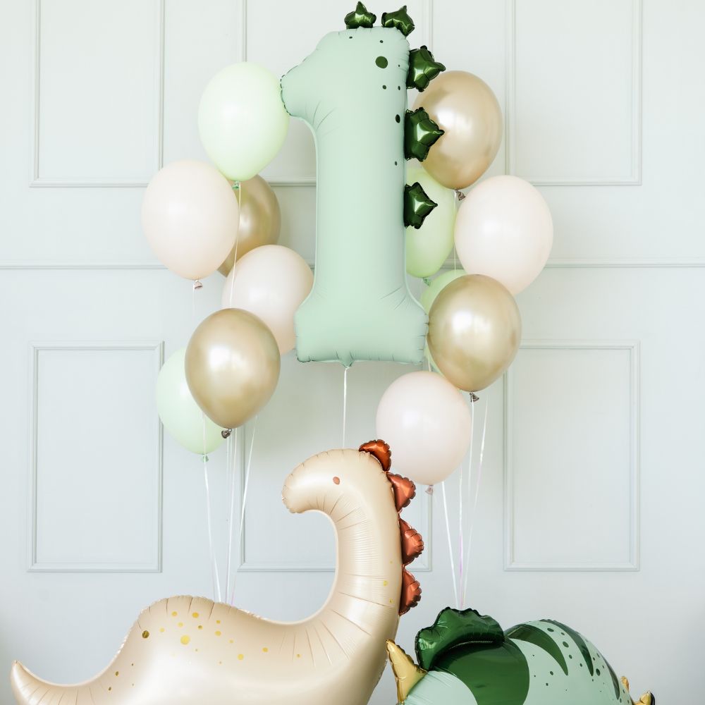 Balon foliowy Cyfra "1" z motywem dinozaura. Świetnie sprawdzi się jako dekoracja na urodzinowym przyjęciu.