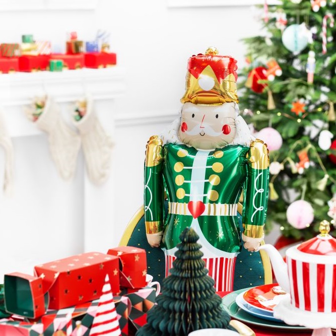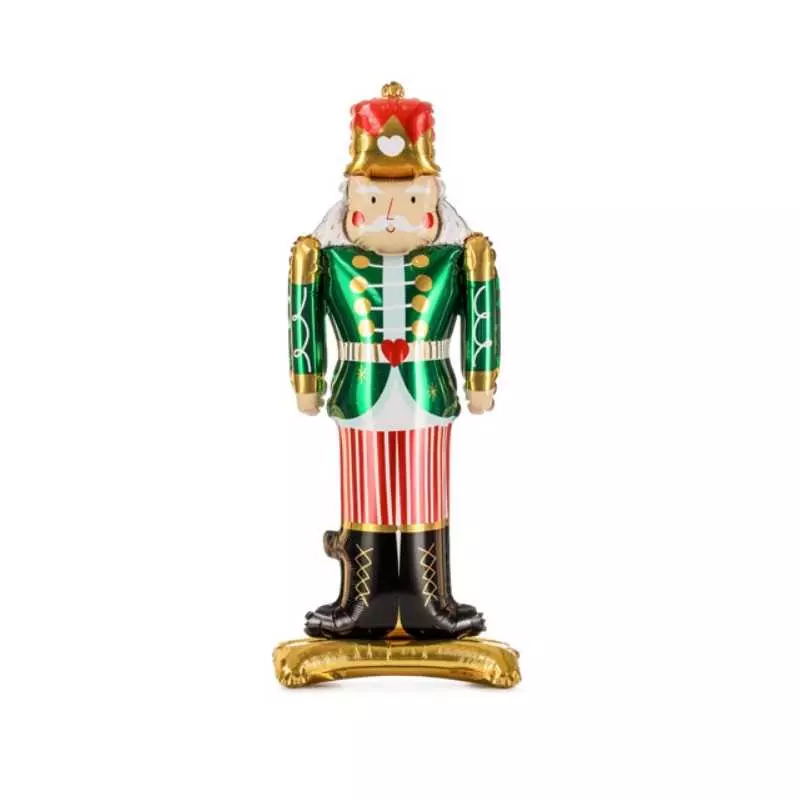 Matowy balon foliowy Dziadek do orzechów z kolorowym, satynowym złotym nadrukiem. Przyozdobi nie jedno świąteczne wnętrze domu!